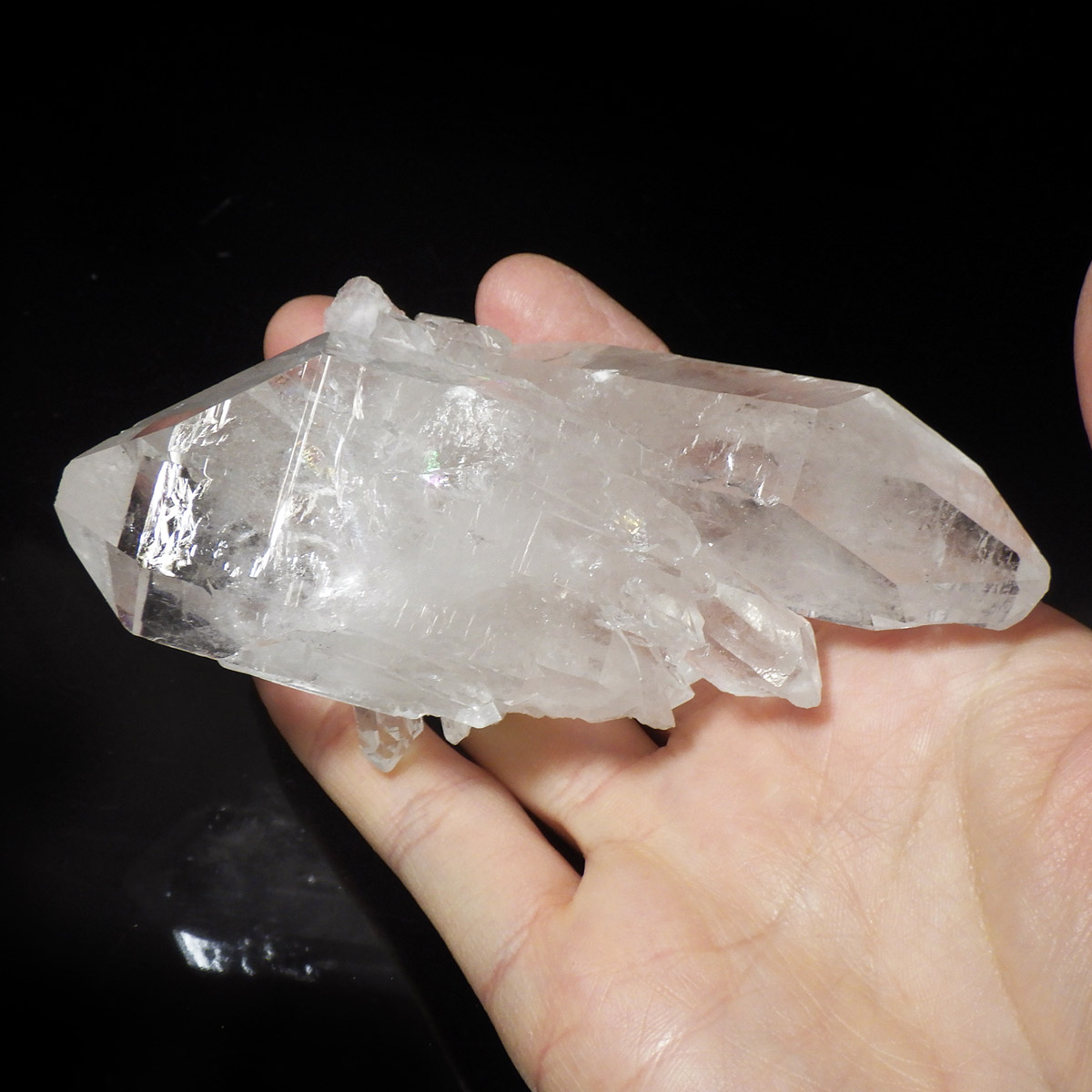 また、水晶柱が放射線状に伸びて立体的な構造を作っているものが多く、「これぞ、水晶クラスター」という形状をしています。