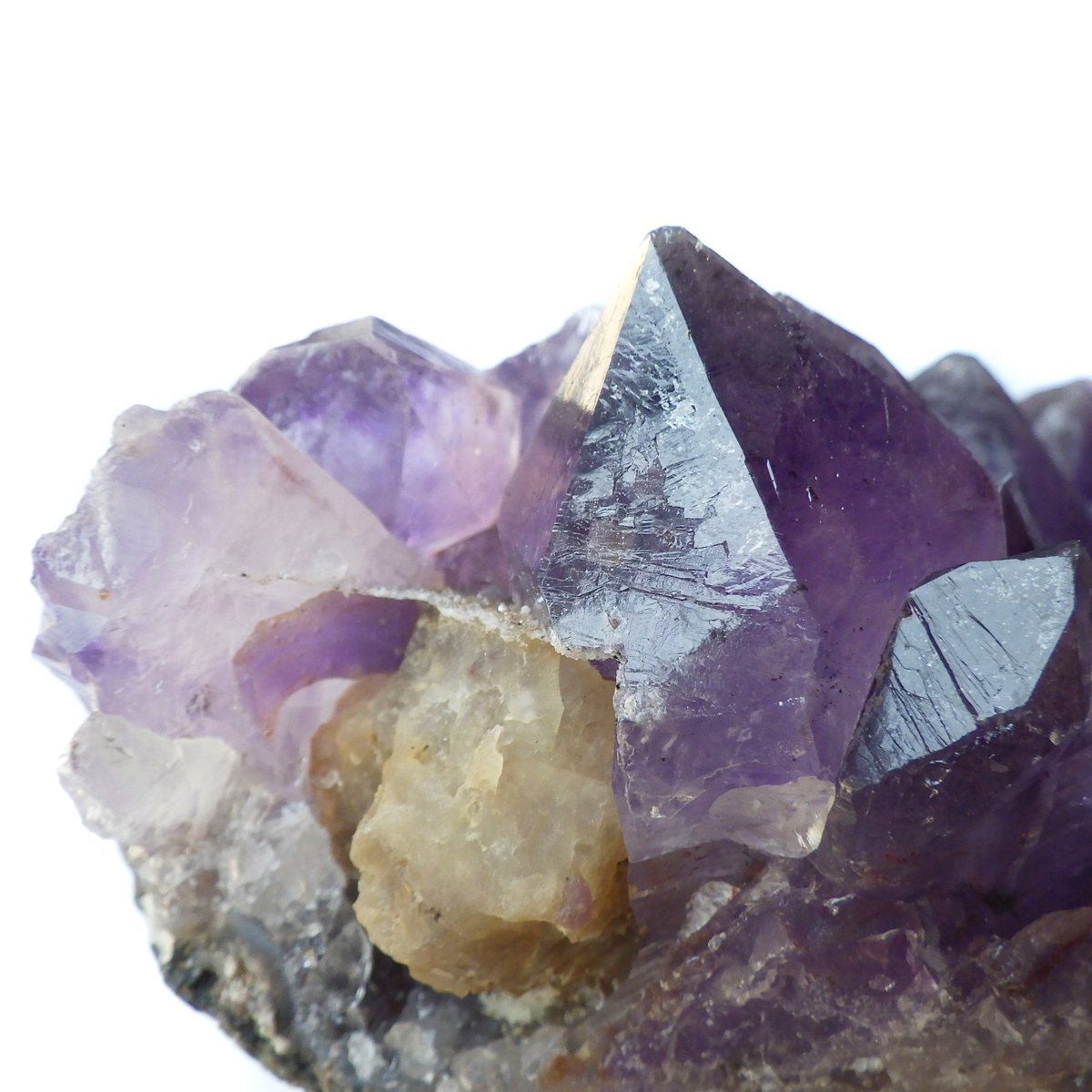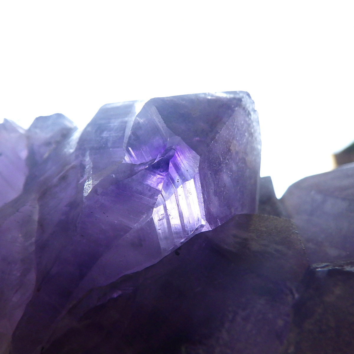 ブラジル産の特大サイズのアメジストクラスターです。一つ一つの結晶が大きく成長したアメジストクラスターです。結晶の中の紫のグラデーションが美しく、表面のマットな質感が面白いです。ブレスレットや空間の浄化用に置いていただくといいと思います。