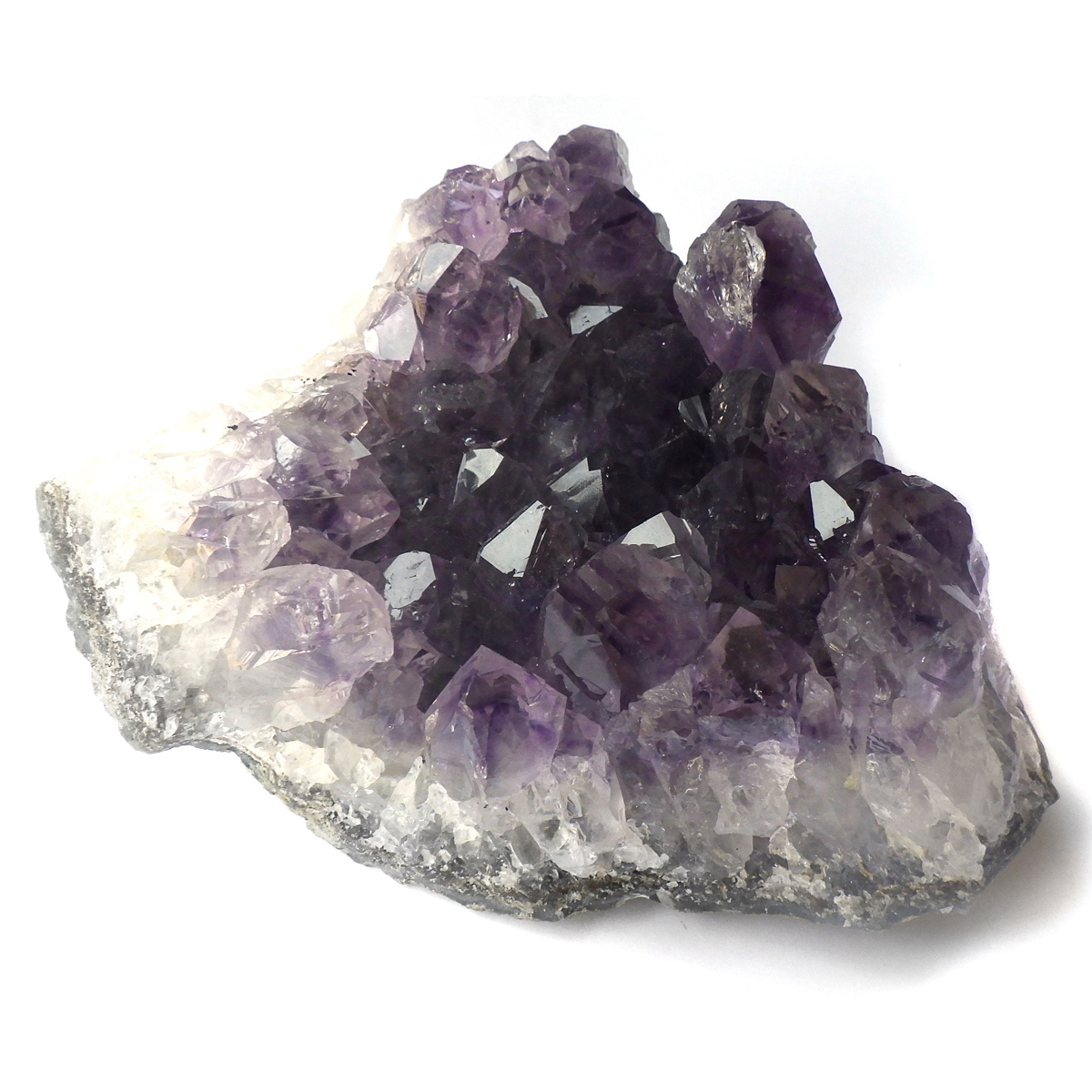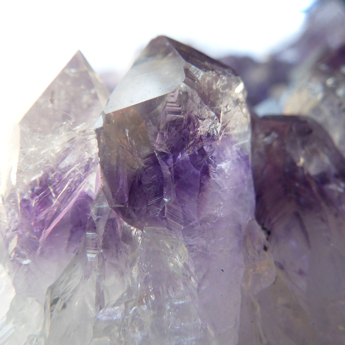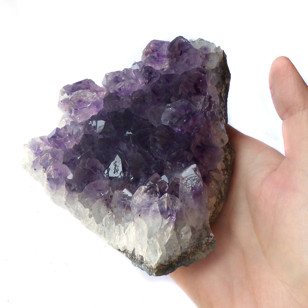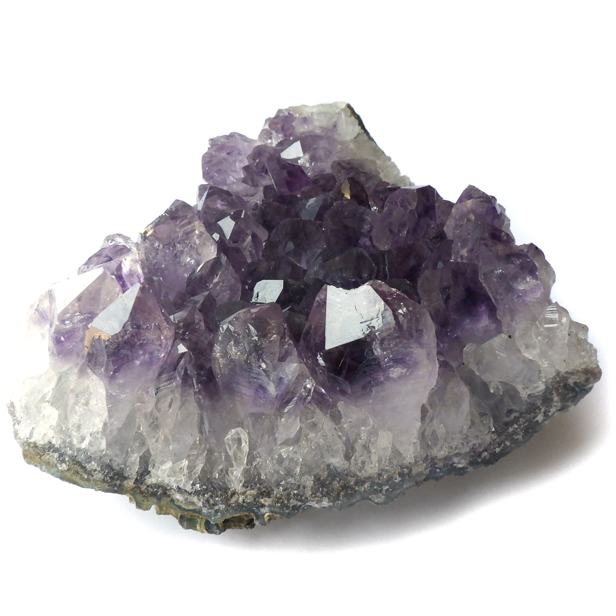 ブラジル産の大サイズのアメジストクラスターです。一つ一つの結晶が美しく成長したアメジストクラスターです。透明感があり、結晶の中のファントムのような紫模様が美しく、小さな結晶が育っている姿も楽しめます。おすすめの一点です。ブレスレットや空間の浄化用に置いていただくといいと思います。