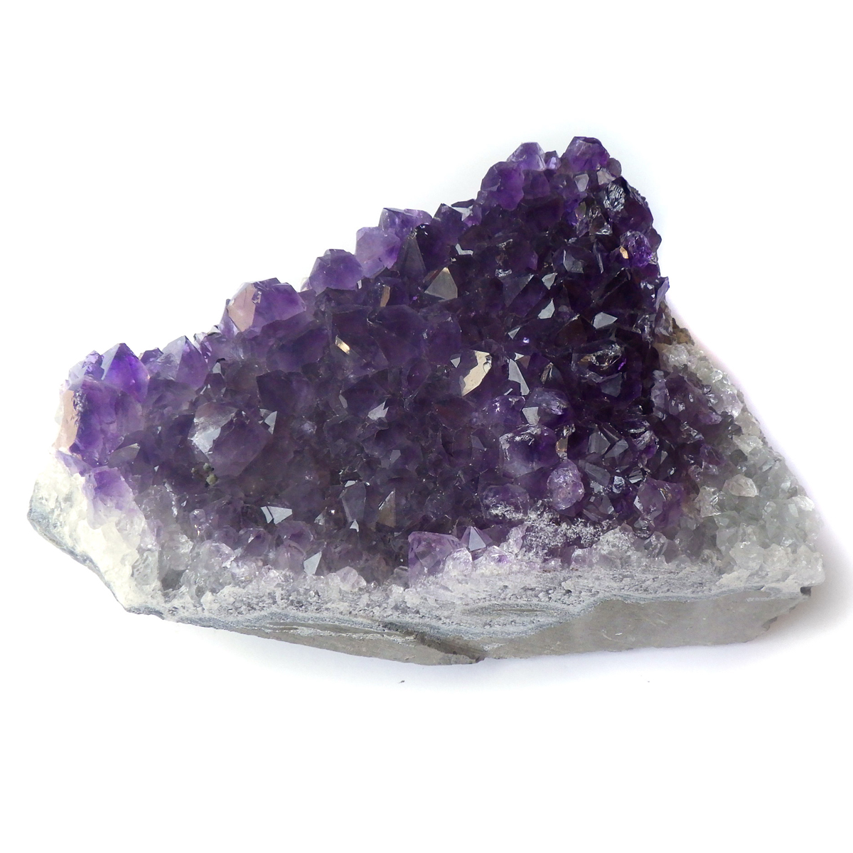 ブラジル産の特大サイズのアメジストクラスターです。大きな一つ一つのしっかりした結晶が美しく成長したアメジストクラスターです。透明感があり、紫のグラデーションが美しくい一点です。ブレスレットや空間の浄化用に置いていただくといいと思います。
