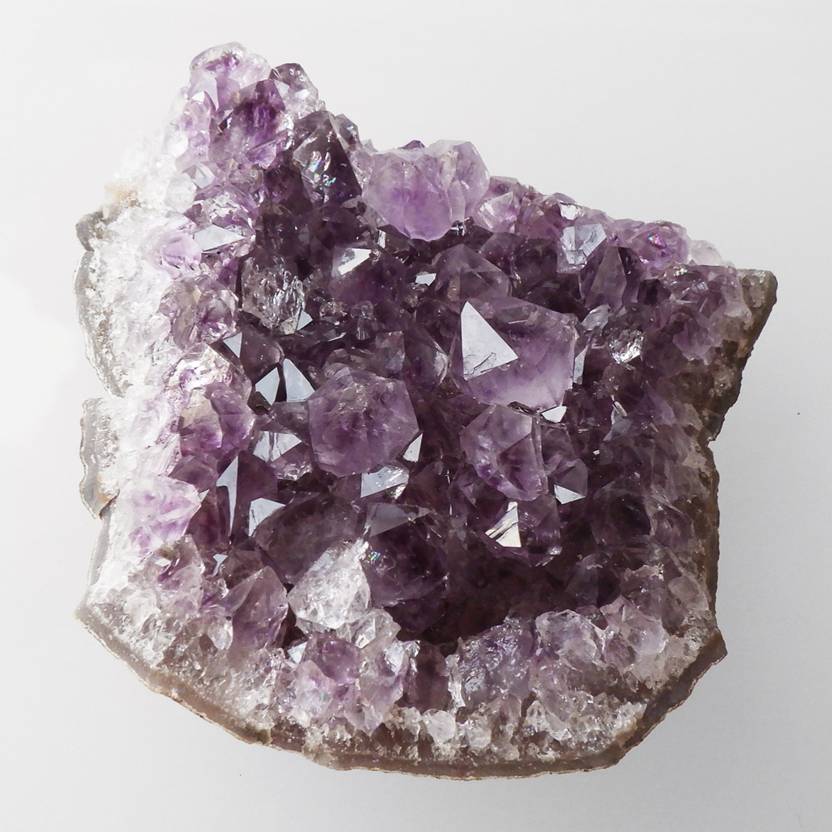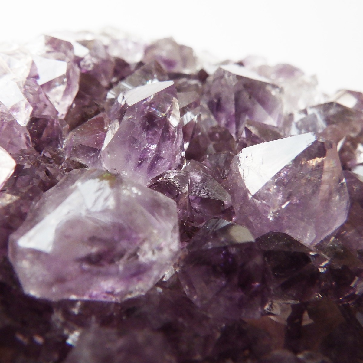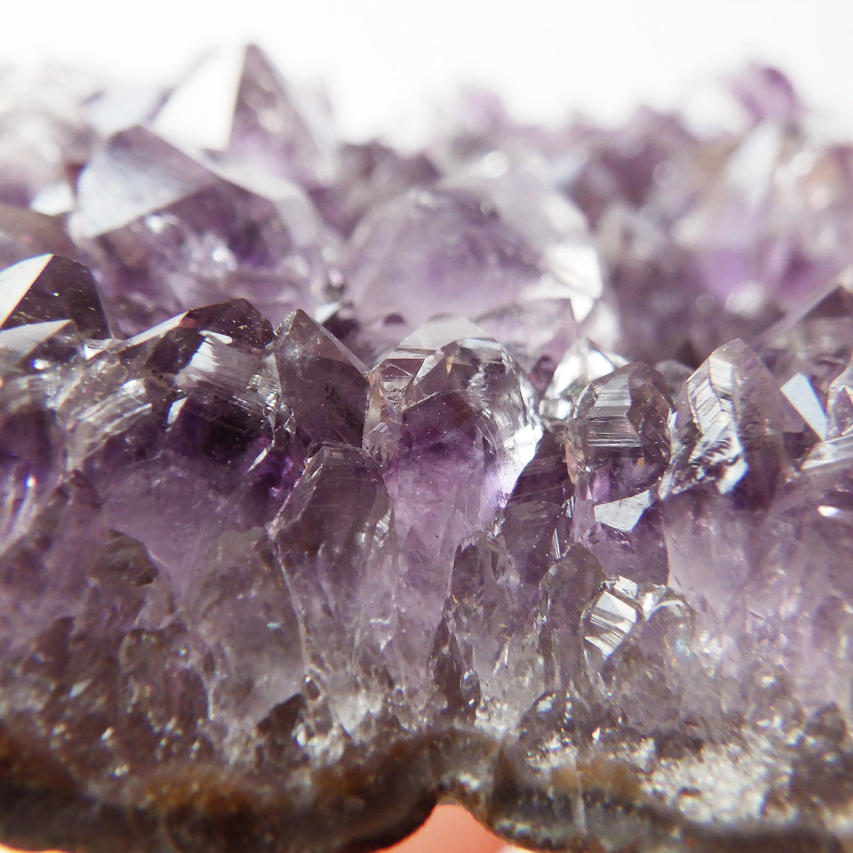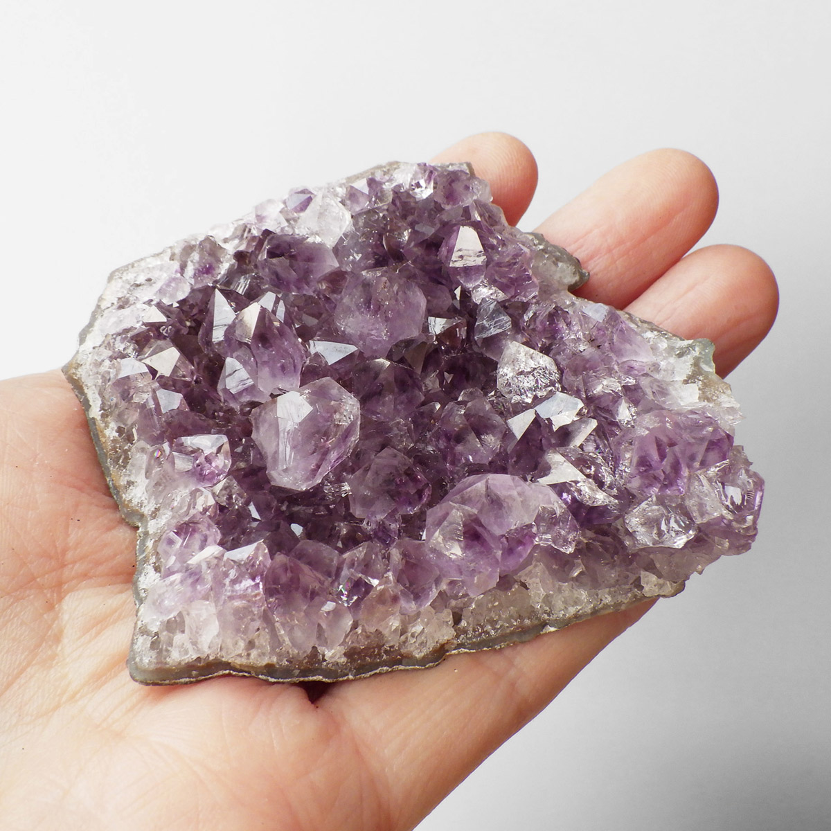 ウルグアイ産のブレスレットの浄化に適当なサイズのアメジストクラスターです。一つ一つの結晶が細かく光の反射で美しくキラキラと輝きます。透明感があり、良質なアメジストの証である紫の色がしっかりと入っています。とてもきれいでおすすめです。