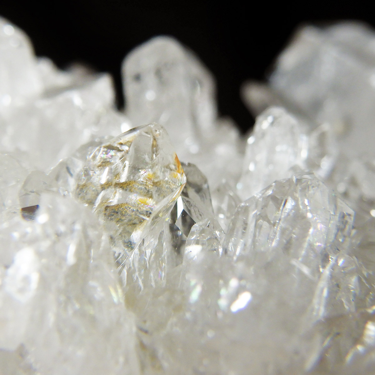 非常に透明度の高い大小様々な結晶が複雑に絡み合い、見る角度によって様々な表情を見せる大変美しいクラスターです。