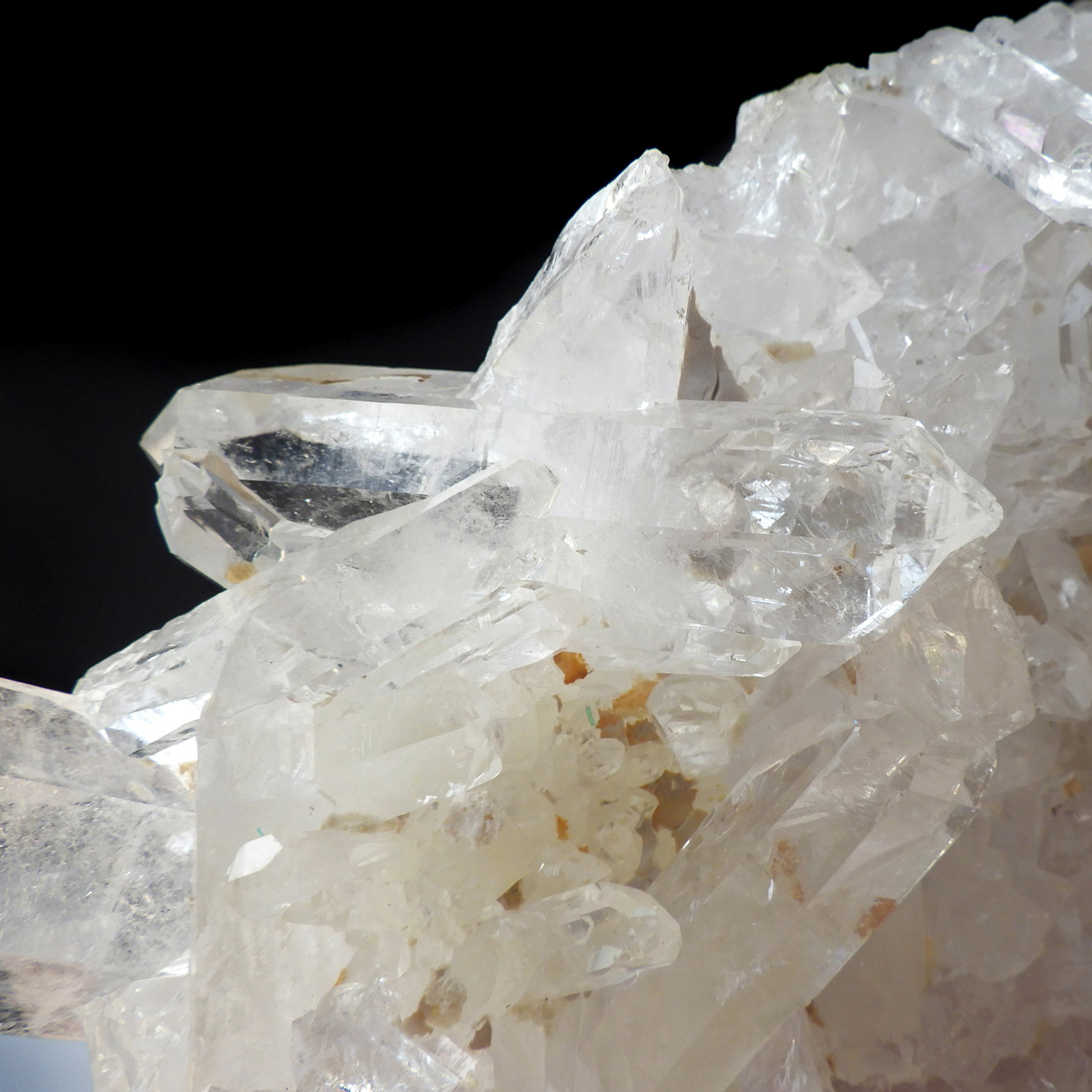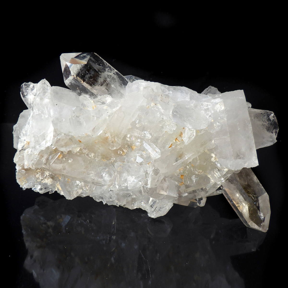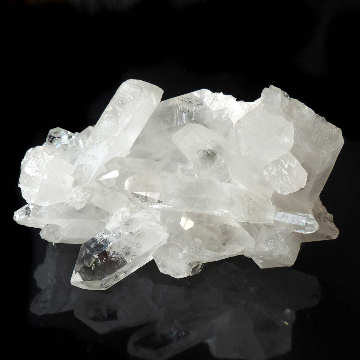 ブラジル産の水晶クラスターです。この水晶クラスターは、しっかりした太さの透明感がある結晶が目を引くクラスターです。また裏面までも水晶柱が沢山育っていて、透明度の高い大小様々な結晶が楽しませてくれます。
