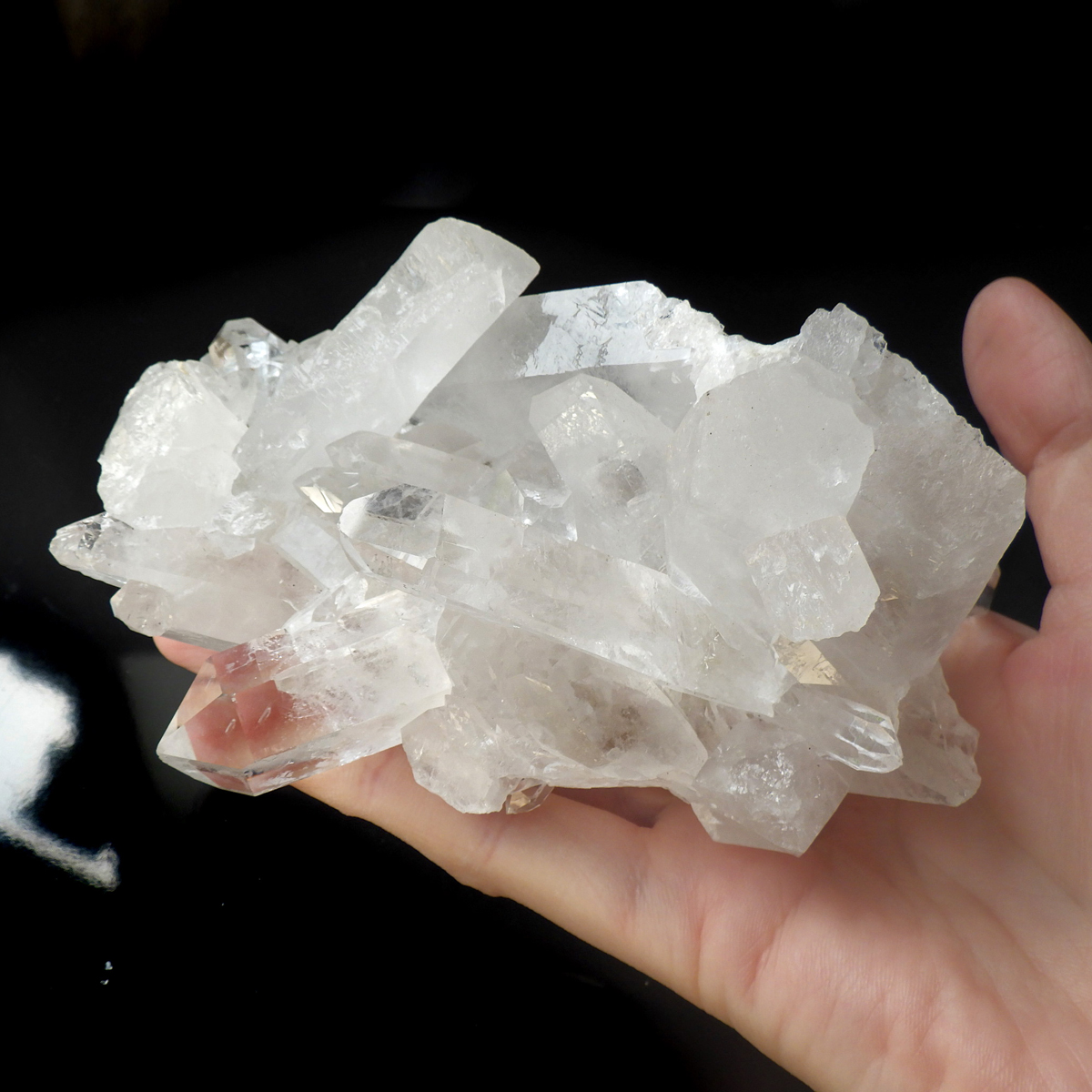 【水晶】 すべてのパワーストーンの基本といわれる石です。 生活空間にこのクラスターを置くとマイナスエネルギーを弾きとばして気の流れを正常化してくれます。 パワーストーンのアクセサリーの浄化や美しい開運インテリアとして最適です。