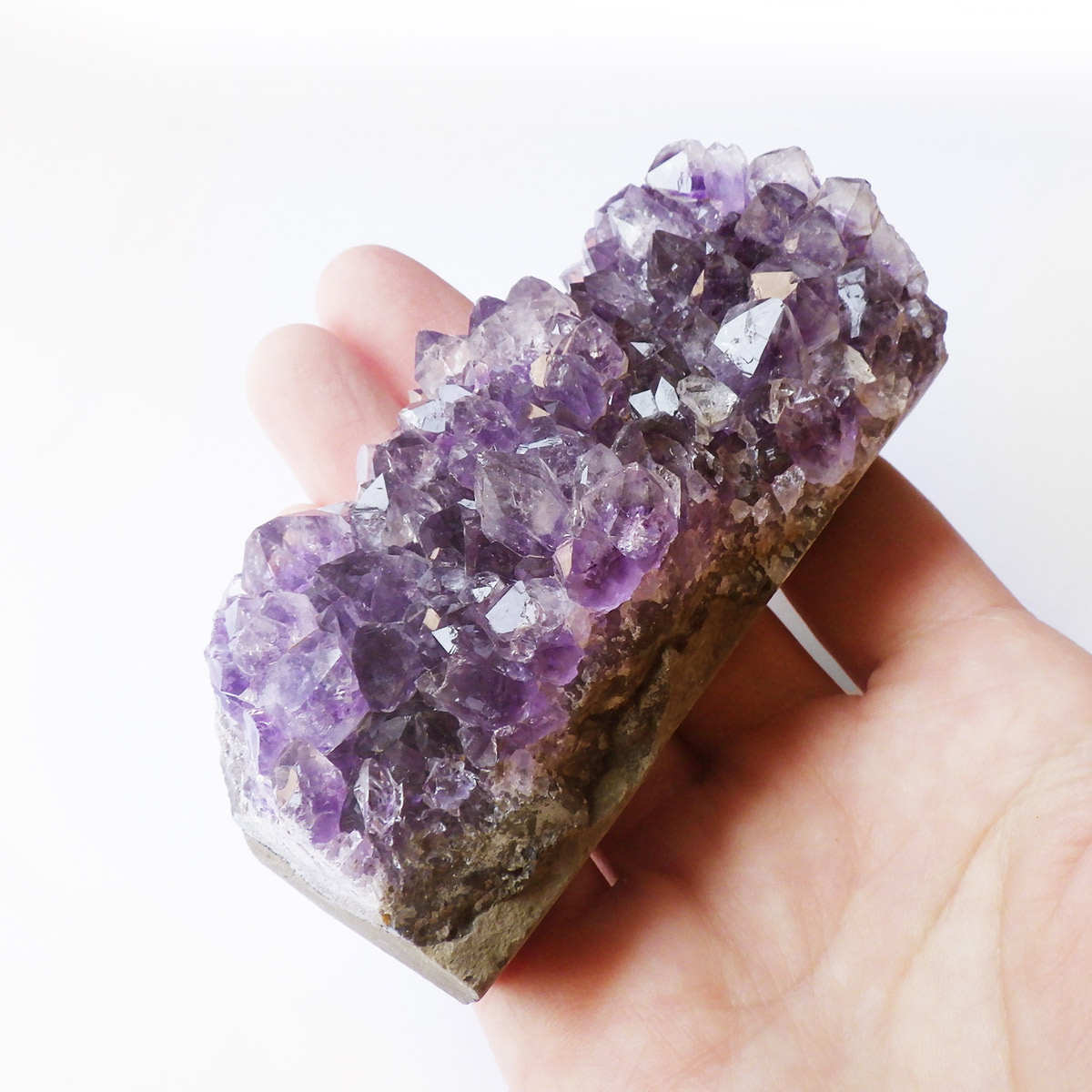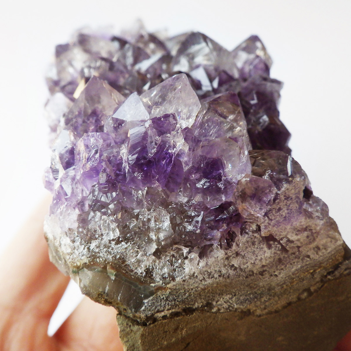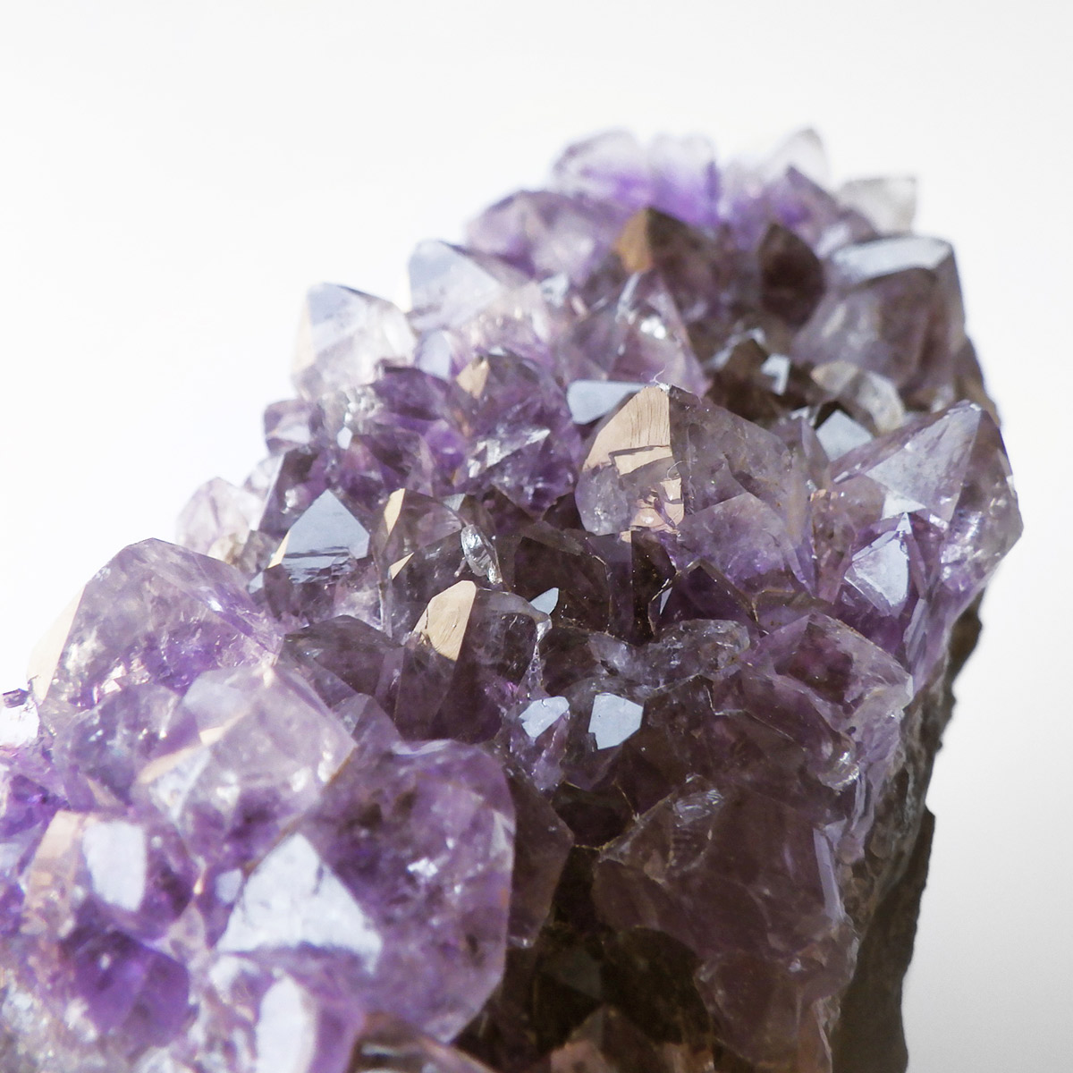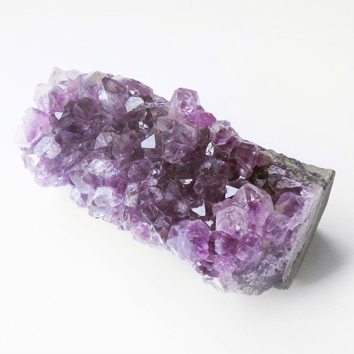 ブラジル産のアメジストクラスターです。一つ一つの結晶が大きく成長したアメジストクラスターを集めました。透明感があり、上質なアメジストの証である紫の色がしっかりと入ったクラスターです。