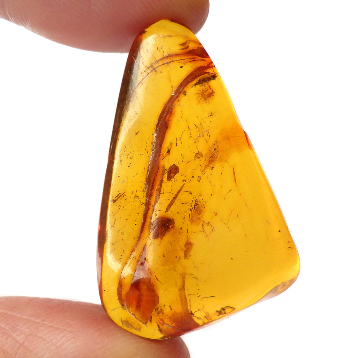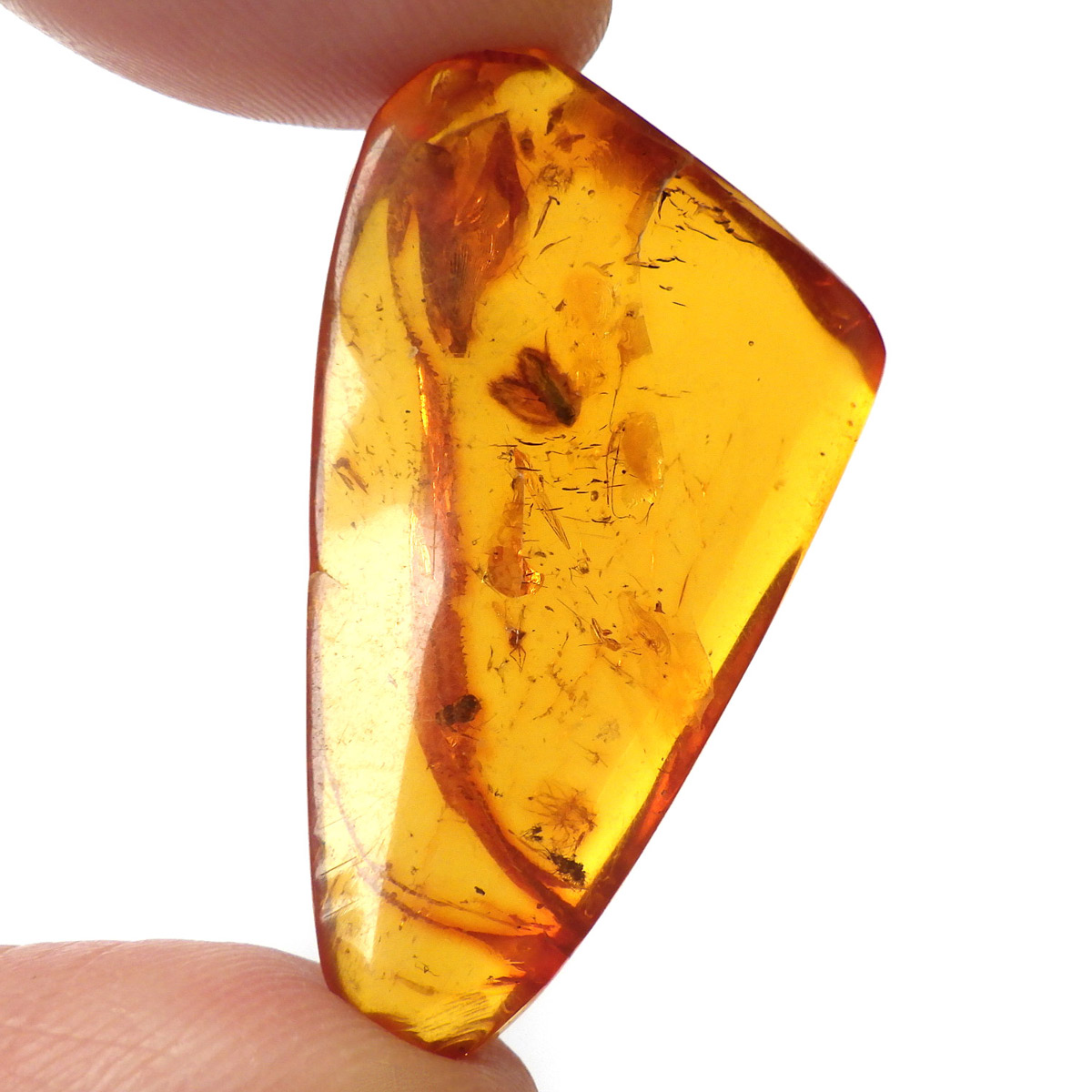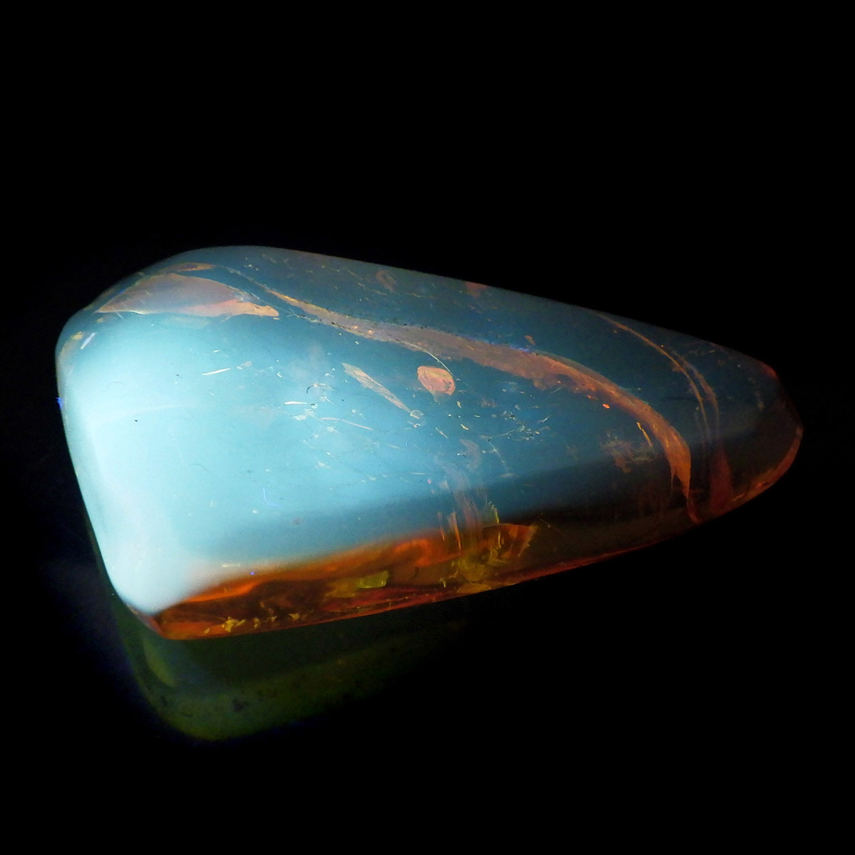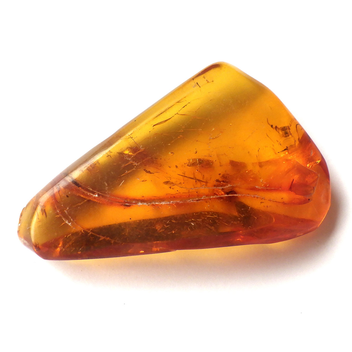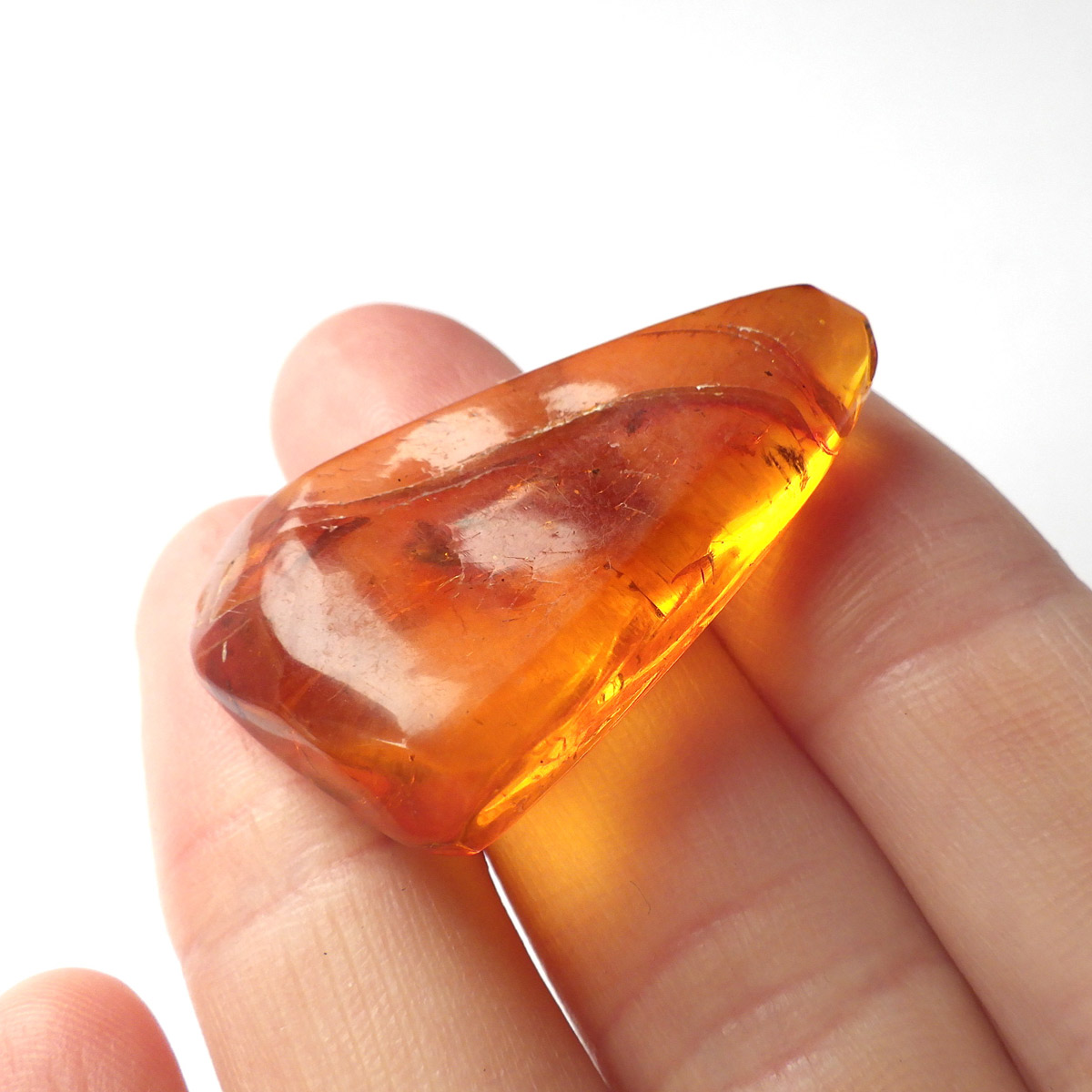 バルト海産の虫入りアンバー(琥珀)、原石です。 松柏類の樹脂が3000万年以上の時を経て化石化したもので、バルト海沿岸地方で多く産出し、紀元前2000年頃、ヨーロッパではすでに「アンバールート」という交易ルートがあったほど人気があったようです。 アンバーという名前は、古代アラビア語の「アンバール(海に漂うもの)」が由来です。樹脂を含む樹木が地殻変動などで海底に沈み、化石へと熟成され海岸に流れ着いたからで、「シー・アンバー」と呼ばれます。また、古代の昆虫などが入ったものは学術的価値も高く、「インセクト・アンバー」と呼ばれます。