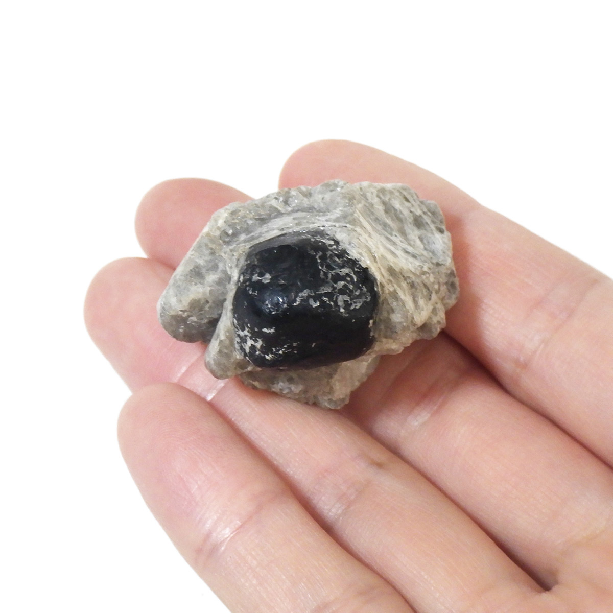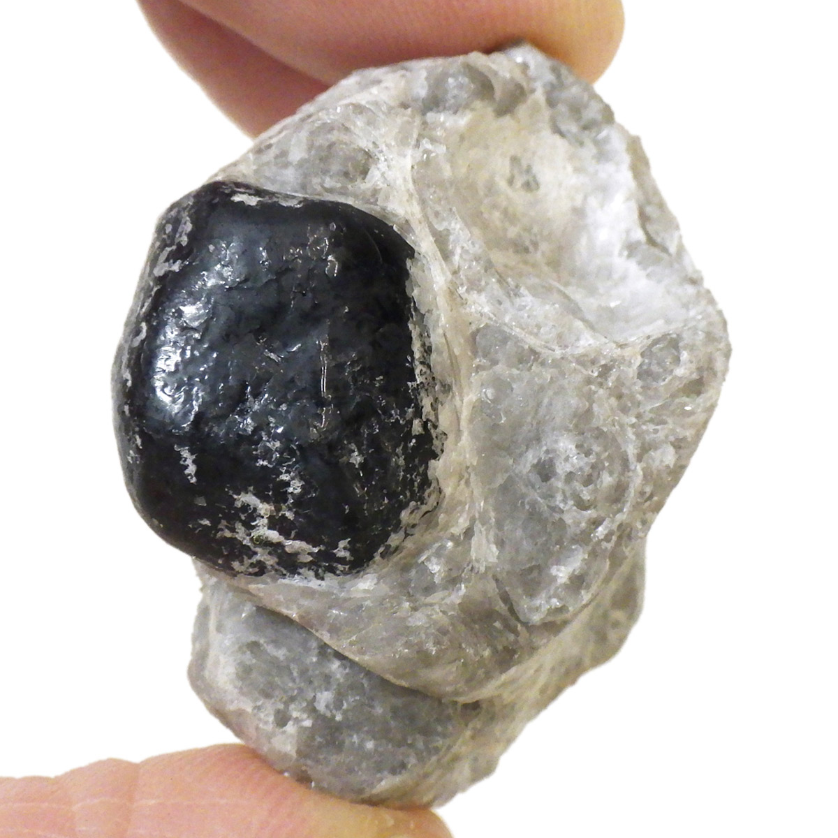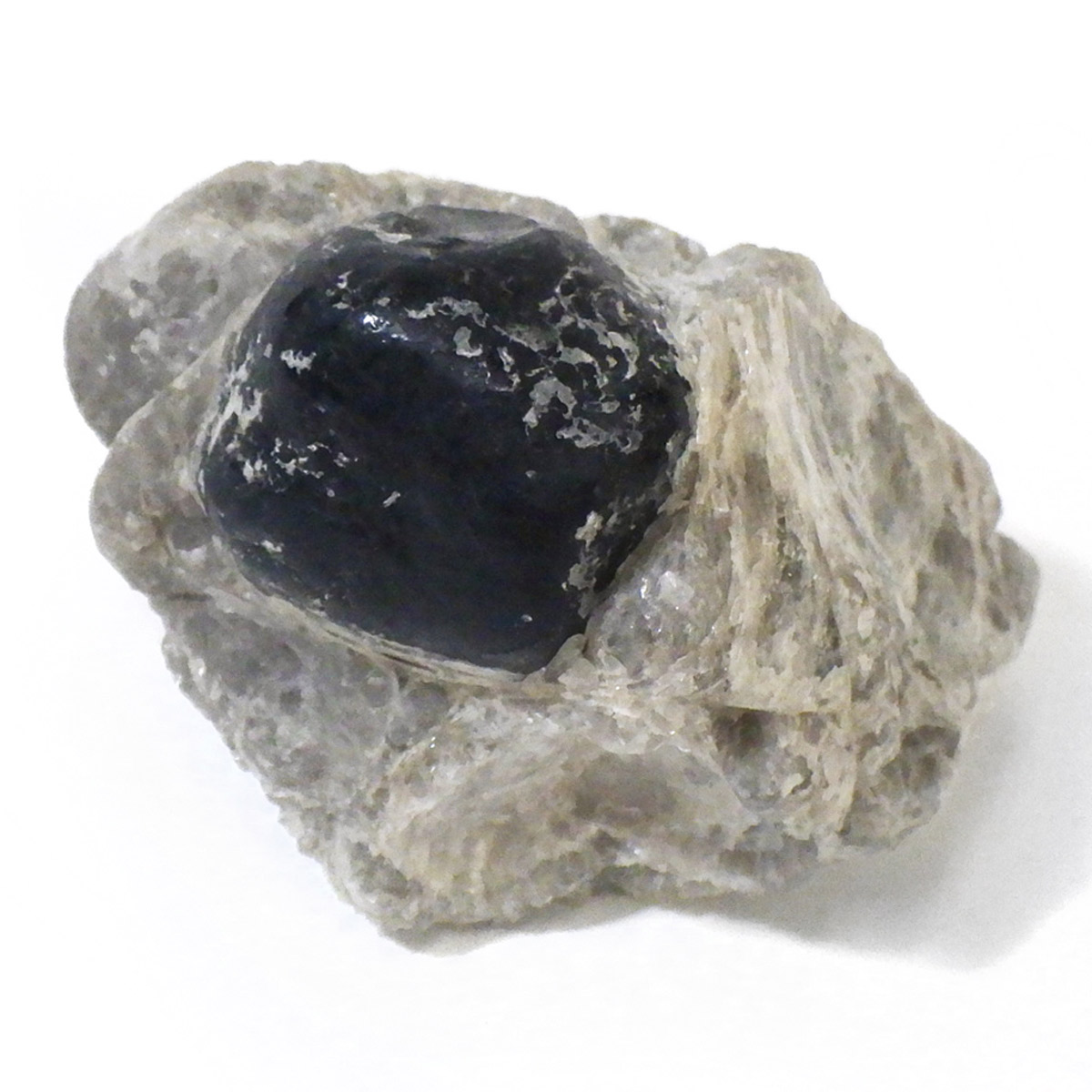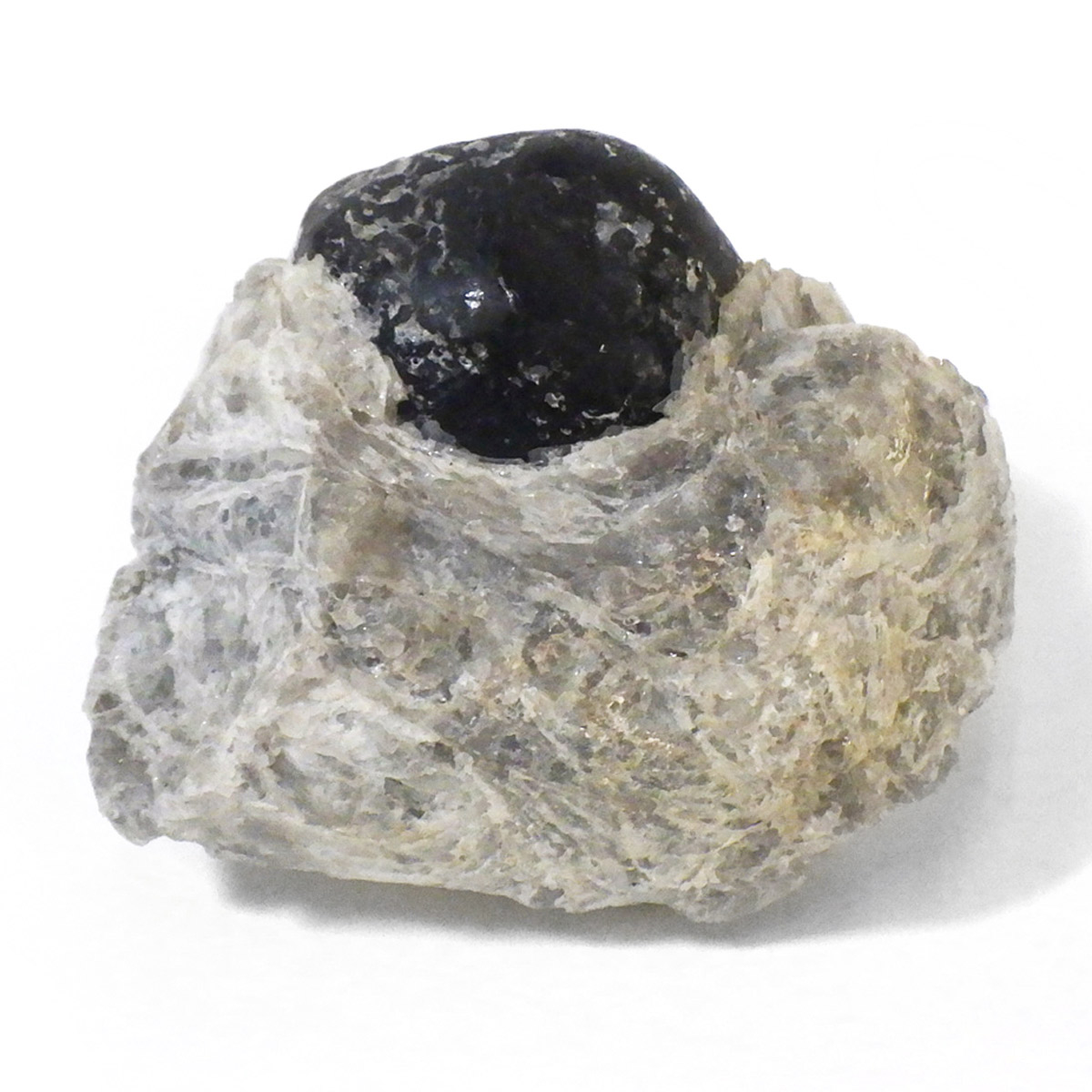 アメリカ・アリゾナ州産のアパッチティアーズ原石です。アパッチティアーズはオブシディアンの一種ですが、通常のオブシディアンとは違い、粘性度の高い溶岩が急速に冷えてつくられる白い真珠岩に埋もれていて、砕くとドロップの形状で産出されます。オブシディアンは天然のガラスで、溶岩が地表付近で急速に冷えて、ガラス質になったものです。そのオブシディアンの中でも、アメリカのアリゾナ州やニューメキシコ州で見つかるものをアパッチティアーズと呼んでいます。アパッチとは、アメリカの先住民族であるネイティブ・アメリカンの部族の名前です。先住民族であるネイティブアメリカンのアパッチ族がヨーロッパの移民との戦争で聖地を追われ、多くの生命が奪われたり、奴隷にされたりした悲しみの黒い涙が地中で固まった涙の結晶と言い伝えられています。
