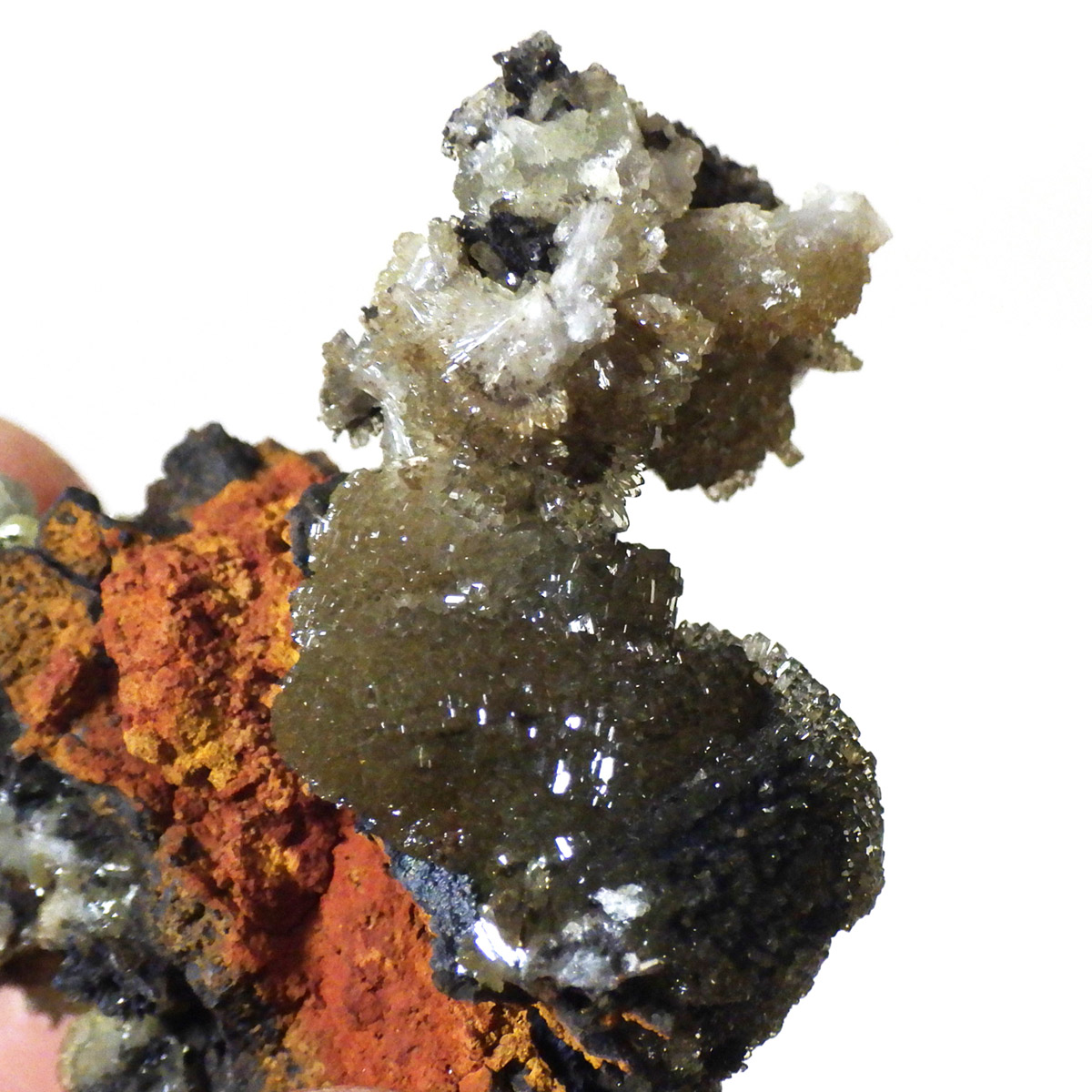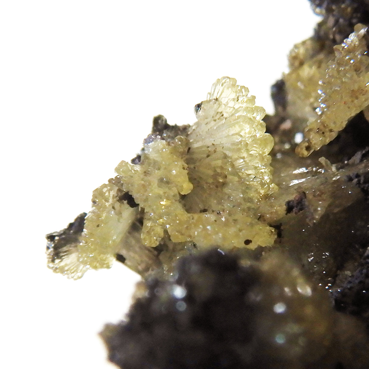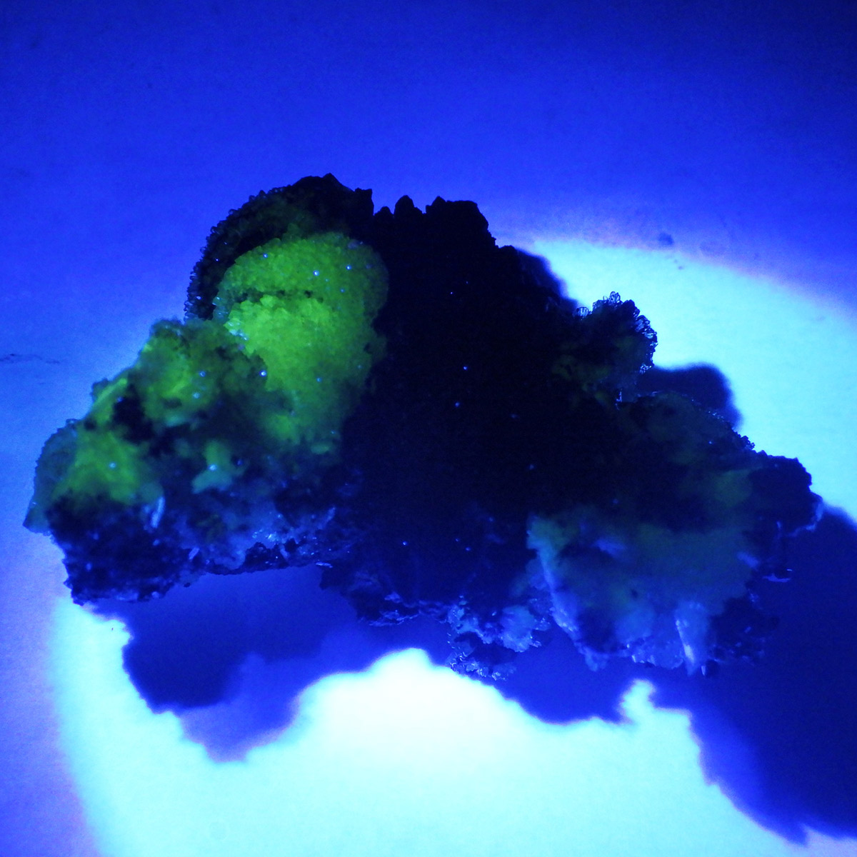 メキシコ産アダマイト原石です。アダマイトはフランス人鉱物学者アダムにちなんで命名されました。和名はアダム鉱。色は黄色、緑、ピンク、菫色と銅やコバルトなど微量成分を含むことによって色の程度が変わります。結晶は花弁状や放射状に成長し、色が鮮やかで光沢があります。多くのアダマイトは蛍光性があり、結晶がブラックライトで鮮緑色にきれいに光ります。