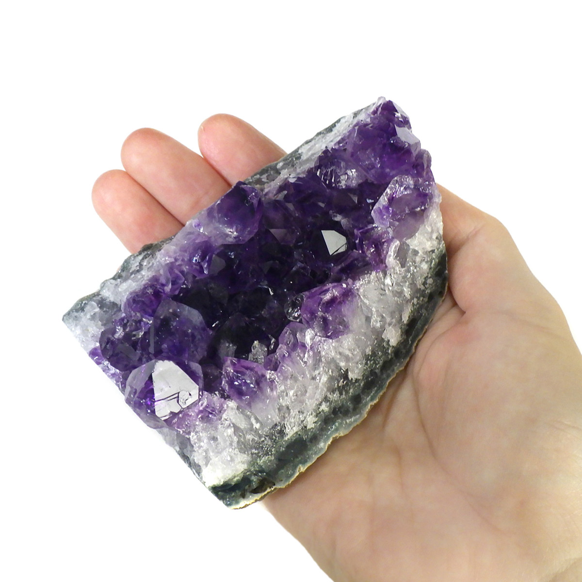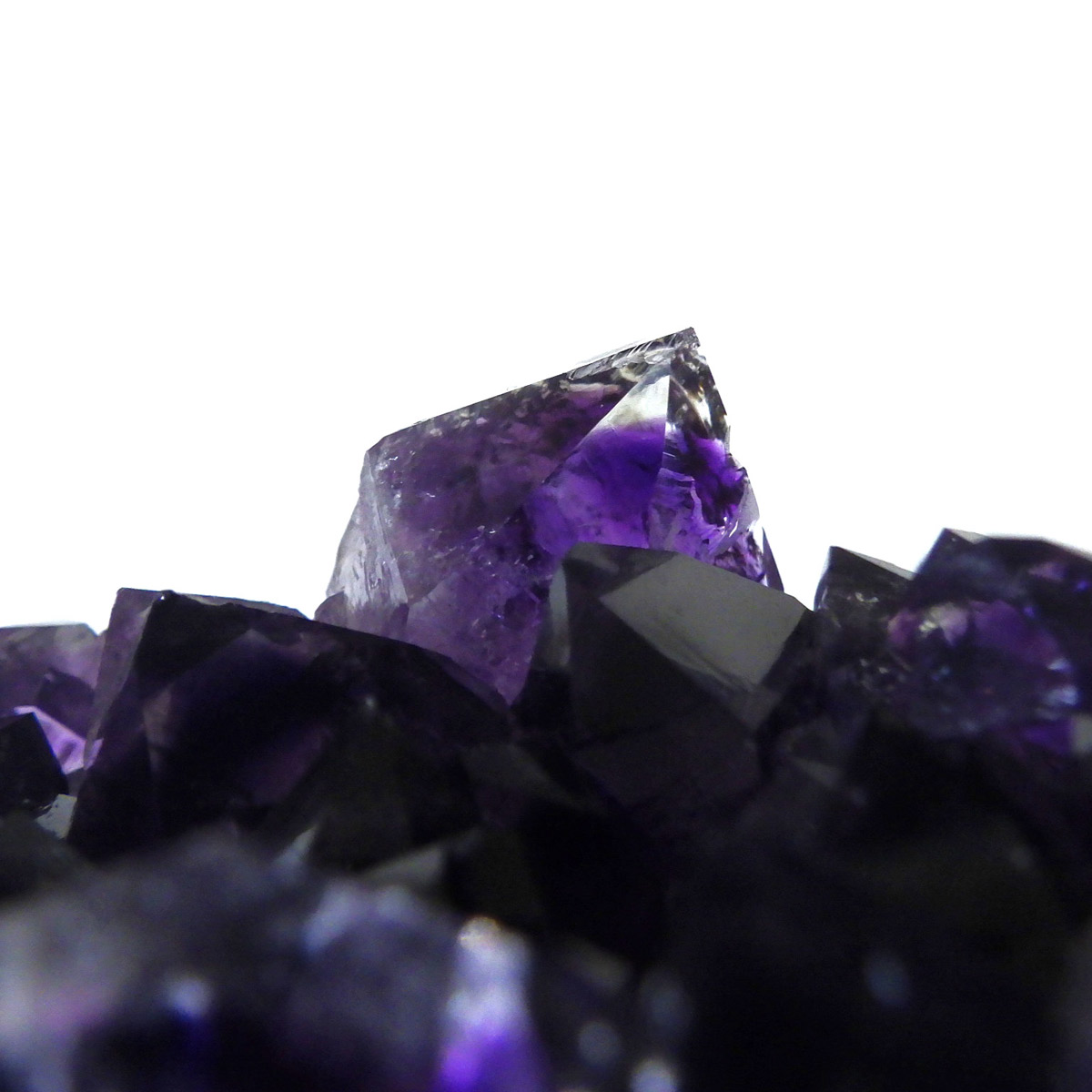 ウルグアイ産のアメジストクラスターです。透明度の高い結晶で、紫のグラデーションが美しくキラキラと輝きます。良質なアメジストの証である紫の色がしっかりと入っています。