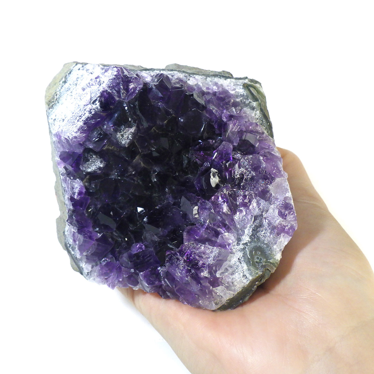 ウルグアイ産のアメジストクラスターです。良質なアメジストの証である紫の色がしっかりと入っていて、座りがよく安定感があります。