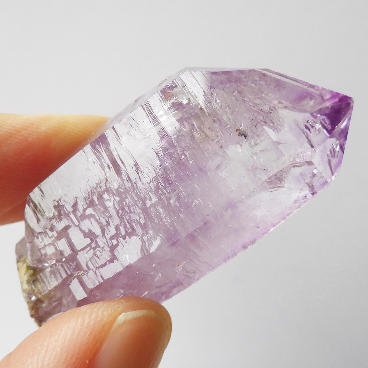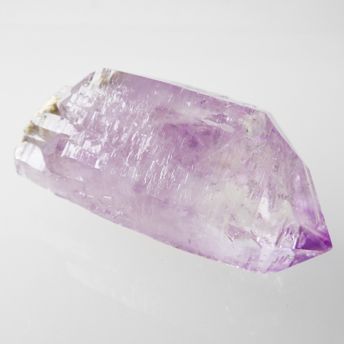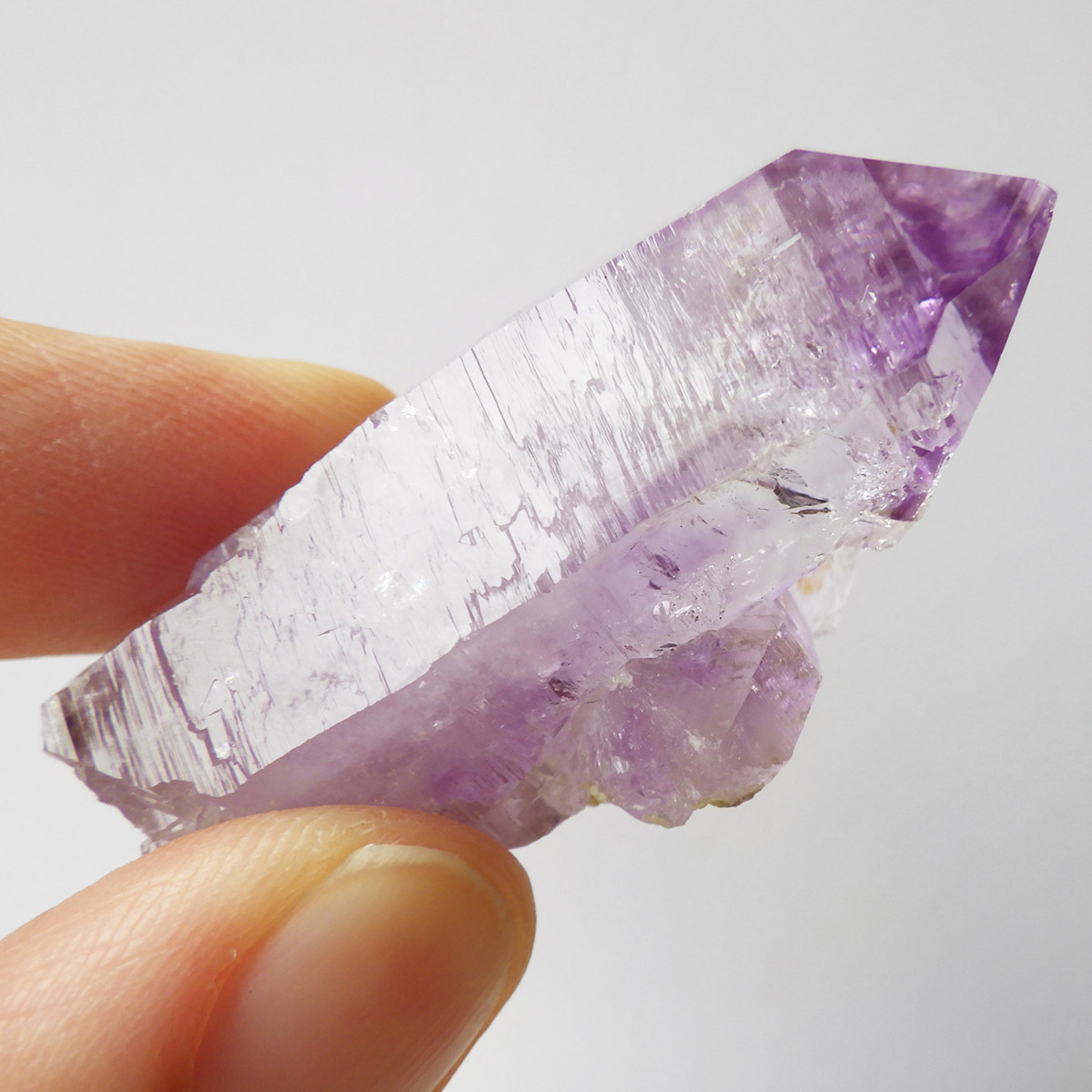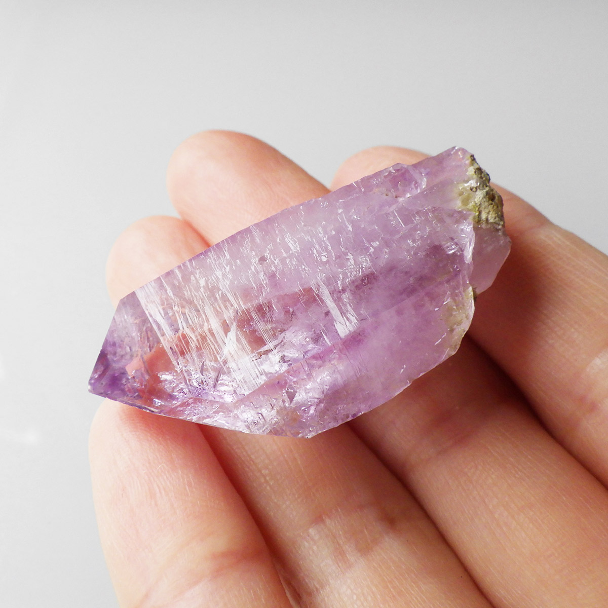 ブラジル産やウルグアイ産などのアメジストとは異なり、ポイントが細長く形成されるのが特徴です。 また、ベラクルス州は大変透明度の高いアメジストが産出され、「世界一高透明で美しいアメジスト」と言われています。産出量が非常に少なく、更に鉱山はすでに閉山されていることから、現在出回っているものは大変希少となります。 淡くてほんのりとしたパープルが先端に向かって濃くなるのも特長です。 何とも言えない清純さを兼ね備えており、ため息の出るような透明度を持っています。心の底から綺麗だなぁと感嘆させられる原石です。