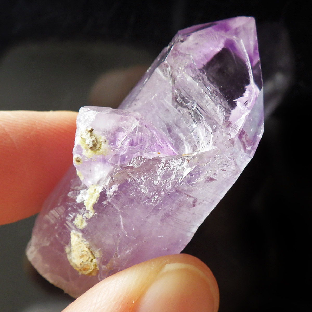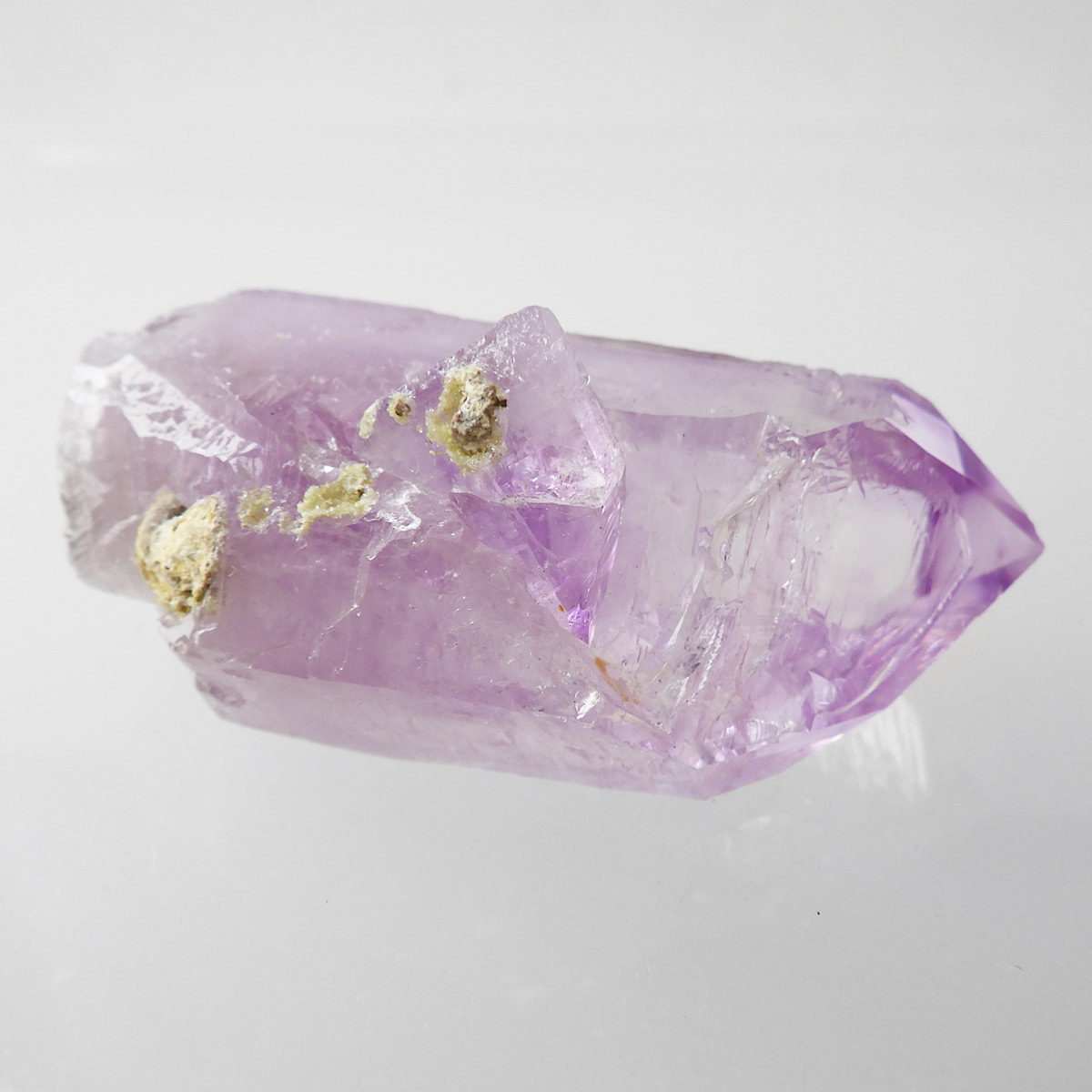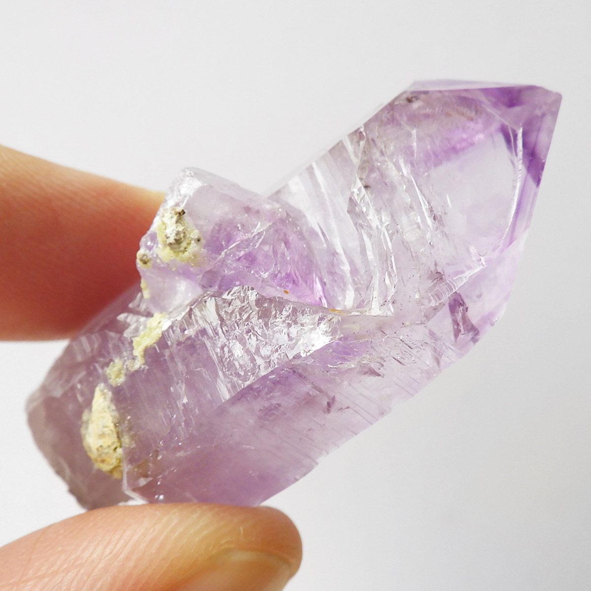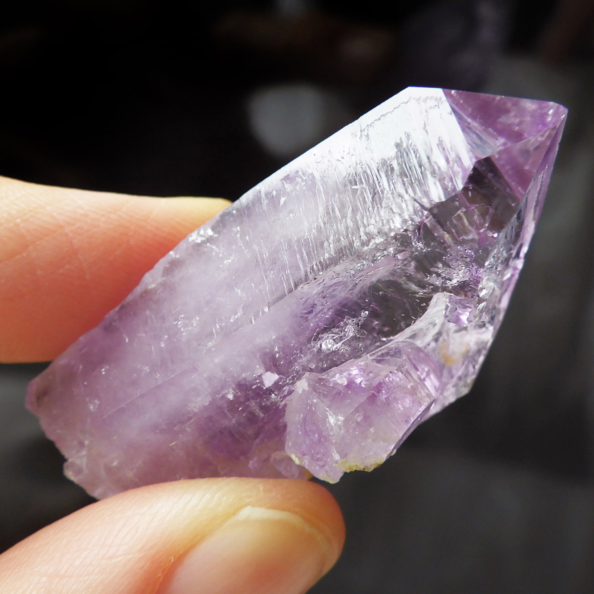 ブラジル産やウルグアイ産などのアメジストとは異なり、ポイントが細長く形成されるのが特徴です。 また、ベラクルス州は大変透明度の高いアメジストが産出され、「世界一高透明で美しいアメジスト」と言われています。産出量が非常に少なく、更に鉱山はすでに閉山されていることから、現在出回っているものは大変希少となります。 淡くてほんのりとしたパープルが先端に向かって濃くなるのも特長です。 何とも言えない清純さを兼ね備えており、ため息の出るような透明度を持っています。心の底から綺麗だなぁと感嘆させられる原石です。