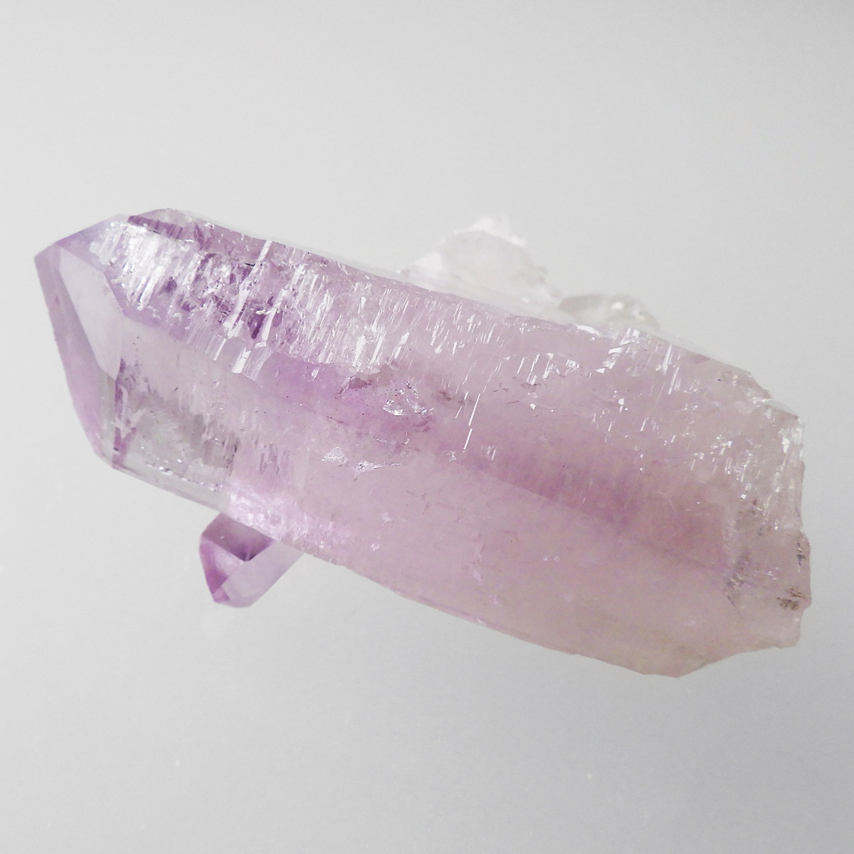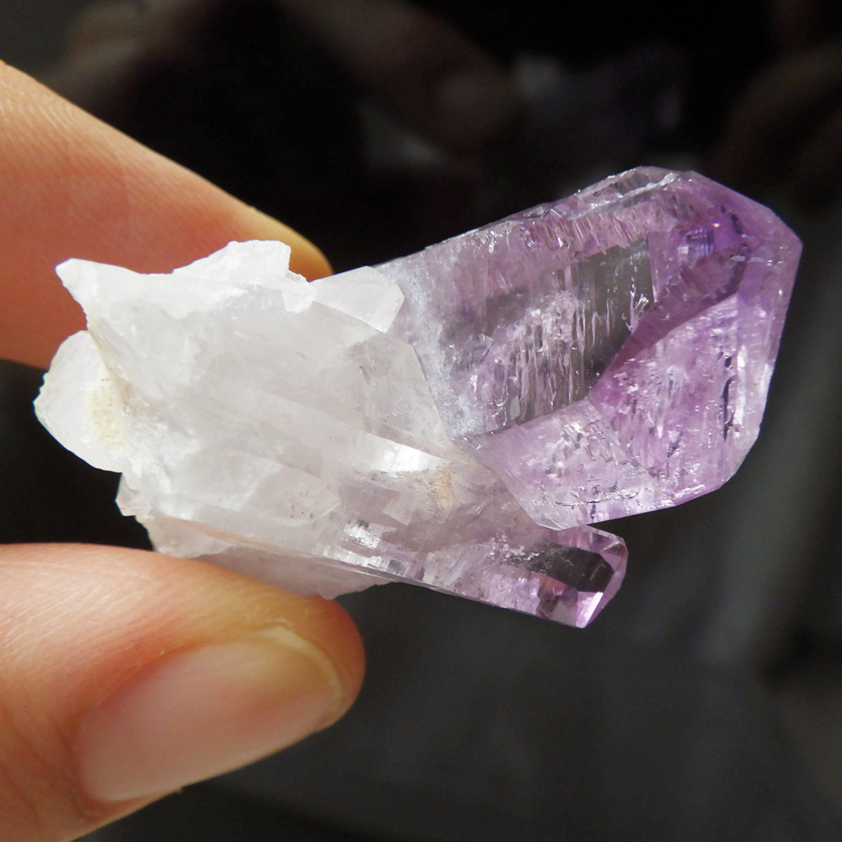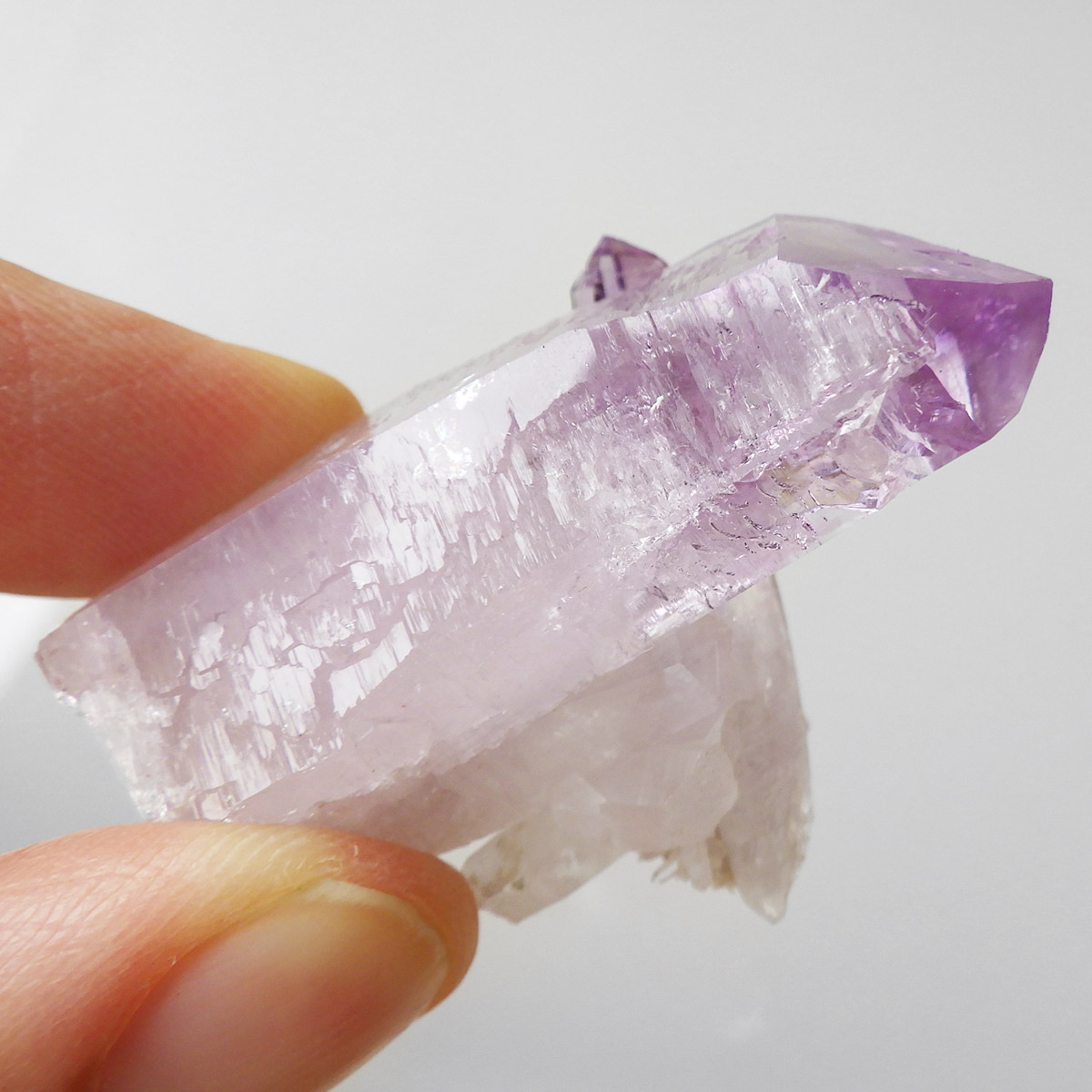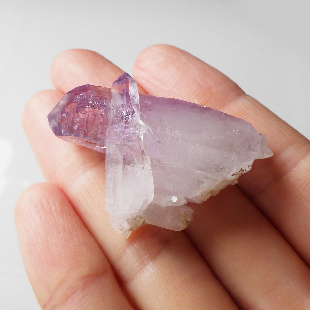 ブラジル産やウルグアイ産などのアメジストとは異なり、ポイントが細長く形成されるのが特徴です。 また、ベラクルス州は大変透明度の高いアメジストが産出され、「世界一高透明で美しいアメジスト」と言われています。産出量が非常に少なく、更に鉱山はすでに閉山されていることから、現在出回っているものは大変希少となります。 淡くてほんのりとしたパープルが先端に向かって濃くなるのも特長です。 何とも言えない清純さを兼ね備えており、ため息の出るような透明度を持っています。心の底から綺麗だなぁと感嘆させられる原石です。