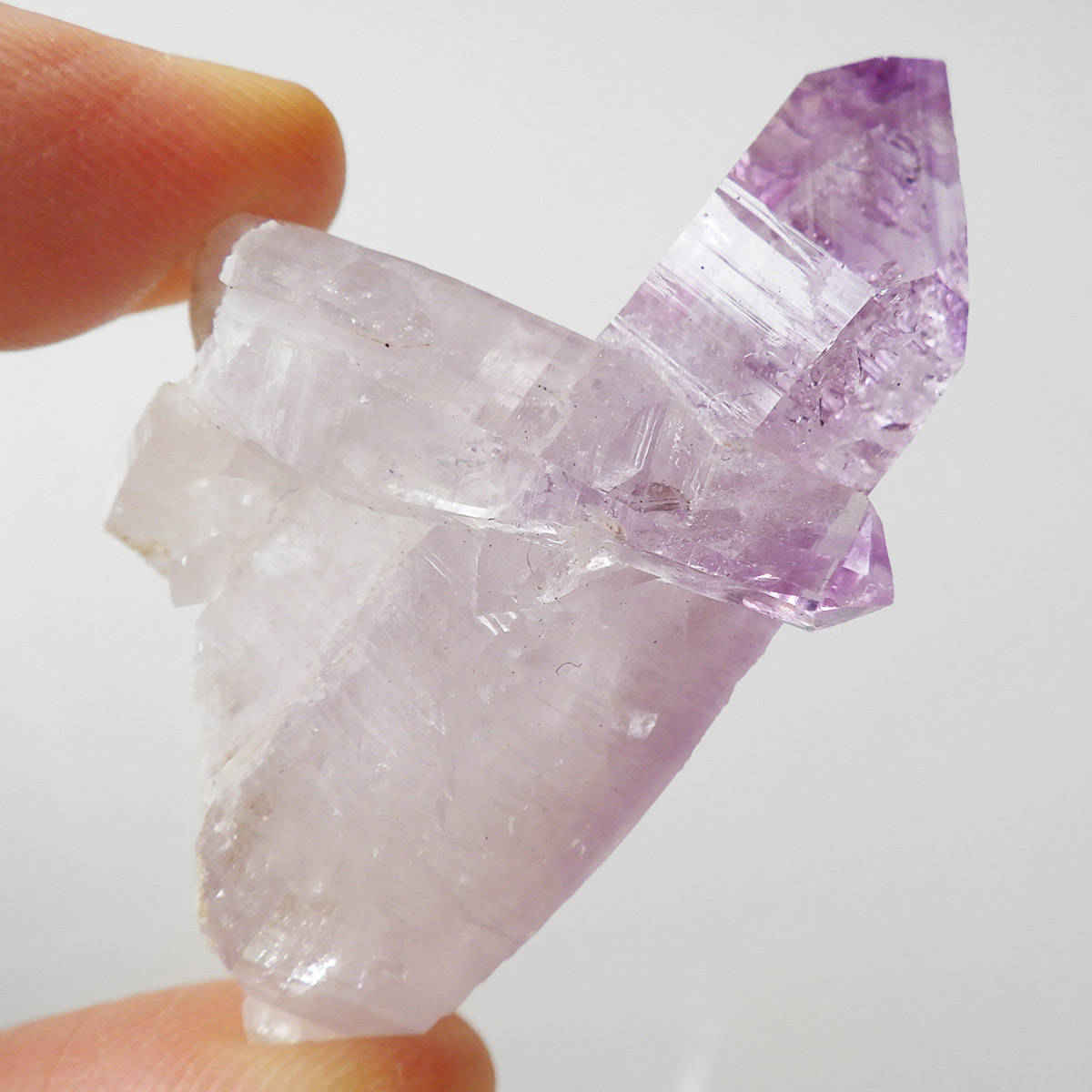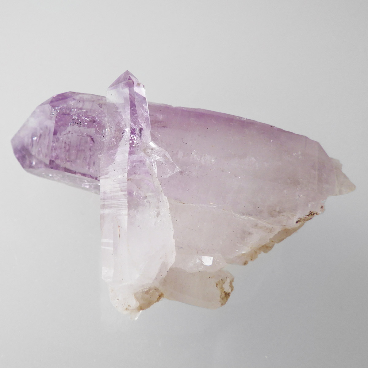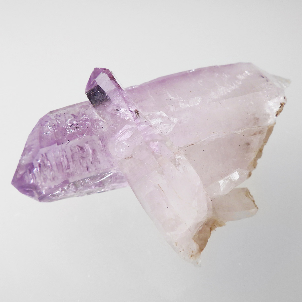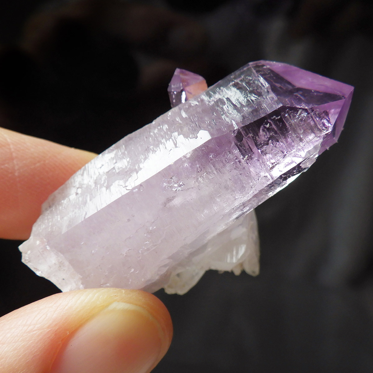 ブラジル産やウルグアイ産などのアメジストとは異なり、ポイントが細長く形成されるのが特徴です。 また、ベラクルス州は大変透明度の高いアメジストが産出され、「世界一高透明で美しいアメジスト」と言われています。産出量が非常に少なく、更に鉱山はすでに閉山されていることから、現在出回っているものは大変希少となります。 淡くてほんのりとしたパープルが先端に向かって濃くなるのも特長です。 何とも言えない清純さを兼ね備えており、ため息の出るような透明度を持っています。心の底から綺麗だなぁと感嘆させられる原石です。