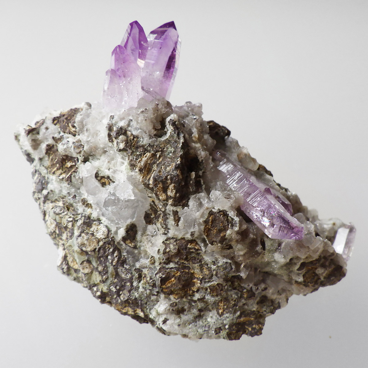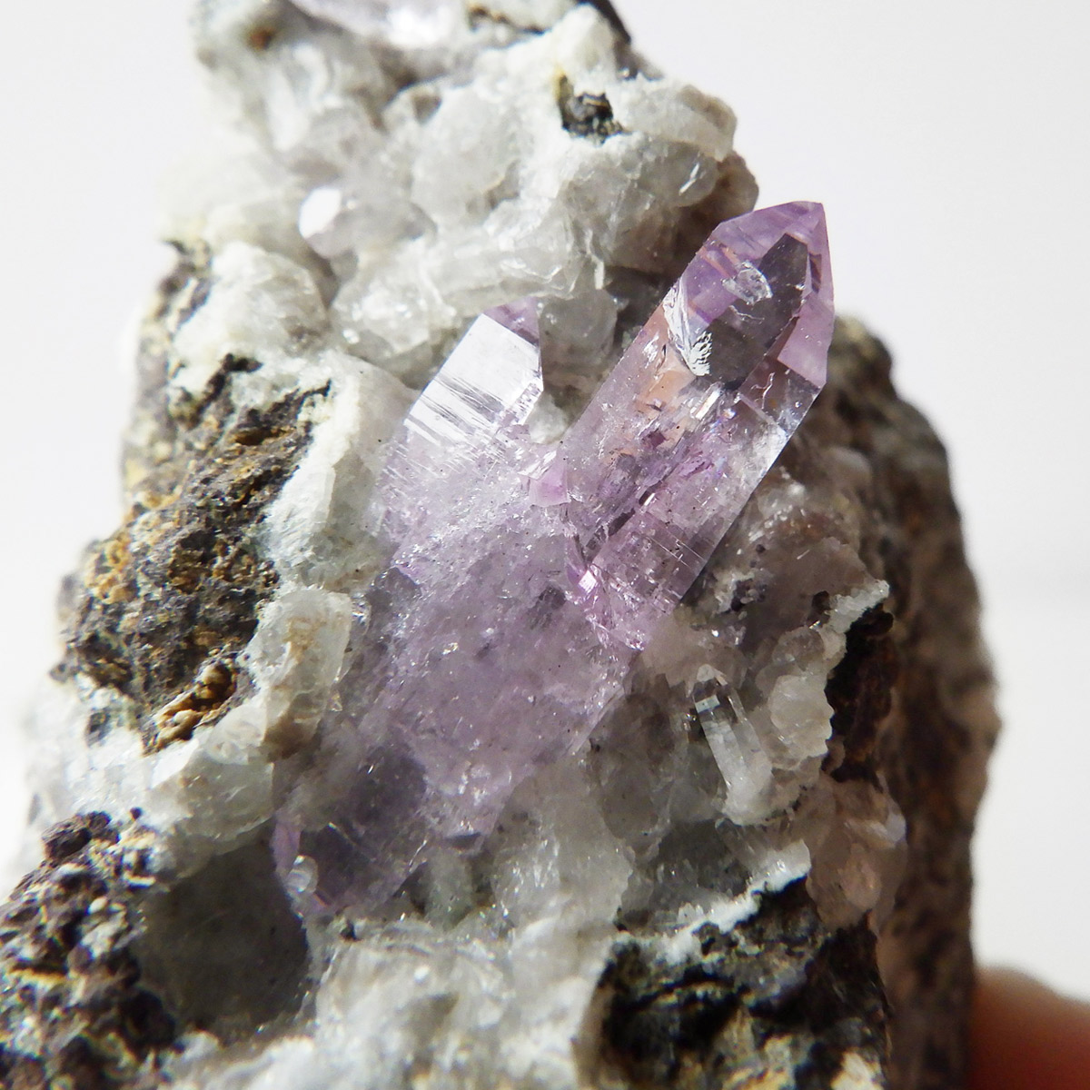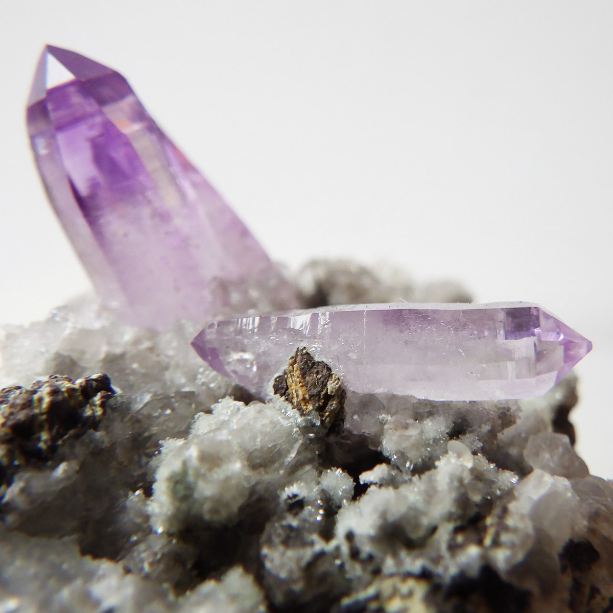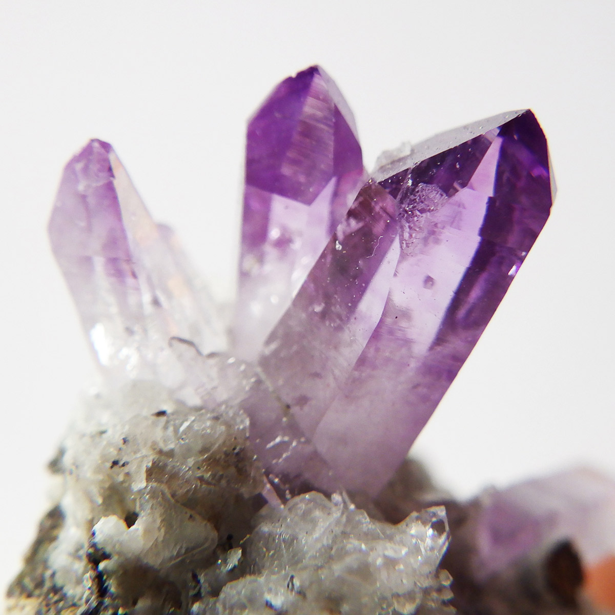 ブラジル産やウルグアイ産などのアメジストとは異なり、ポイントが細長く形成されるのが特徴です。 また、ベラクルス州は大変透明度の高いアメジストが産出され、「世界一高透明で美しいアメジスト」と言われています。産出量が非常に少なく、更に鉱山はすでに閉山されていることから、現在出回っているものは大変希少となります。 淡くてほんのりとしたパープルが先端に向かって濃くなるのも特長です。 何とも言えない清純さを兼ね備えており、ため息の出るような透明度を持っています。心の底から綺麗だなぁと感嘆させられる原石です。