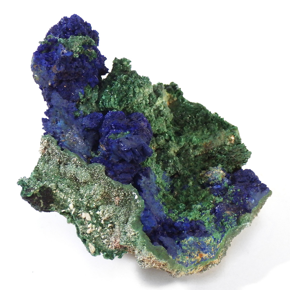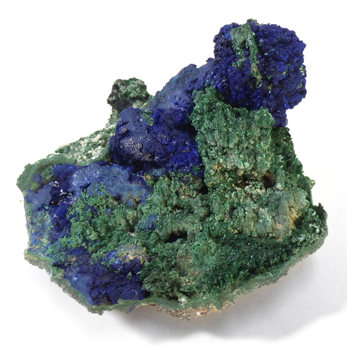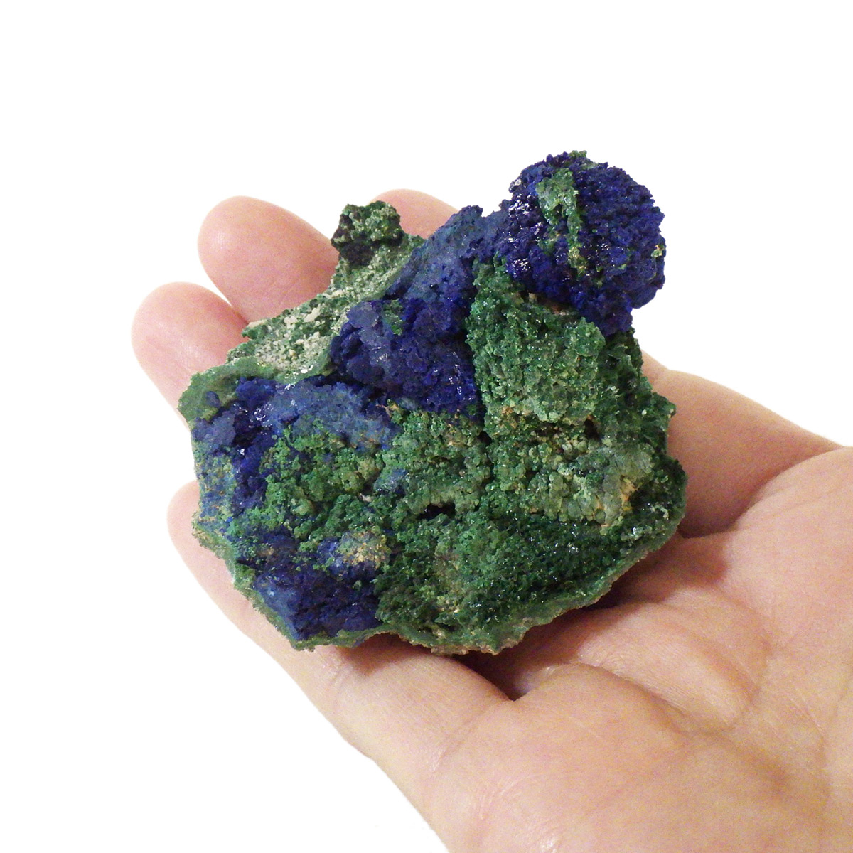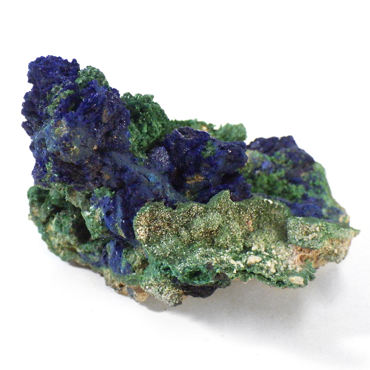 モロッコ産のアズライトwithマラカイト原石です。アズライトに一部マラカイトが共生した原石です。高品質のアズライトのキラキラした結晶とマラカイトの艶やかな光沢が同時に楽しめます。アズロマラカイトとも呼ばれております。アズライトの青色とマラカイトの緑色が混ざり合ったアースカラーの芸術的な美しさを持っています。