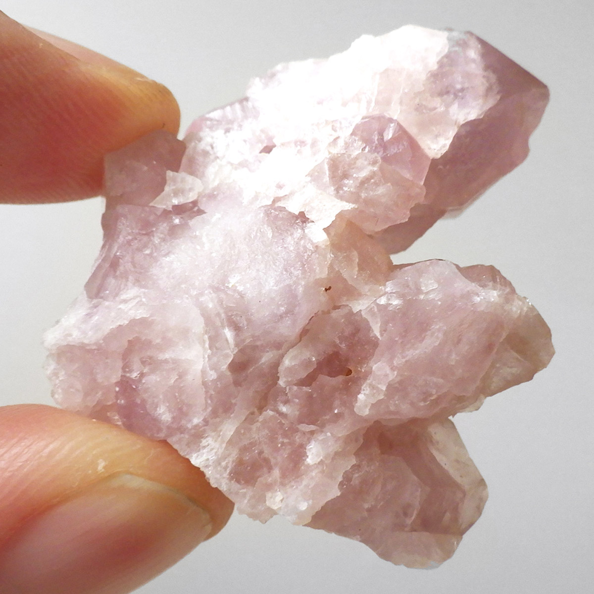 そのジオードを割ると中から通常は紫のアメジストが現れますが、稀にピンク色の結晶が出てきます。