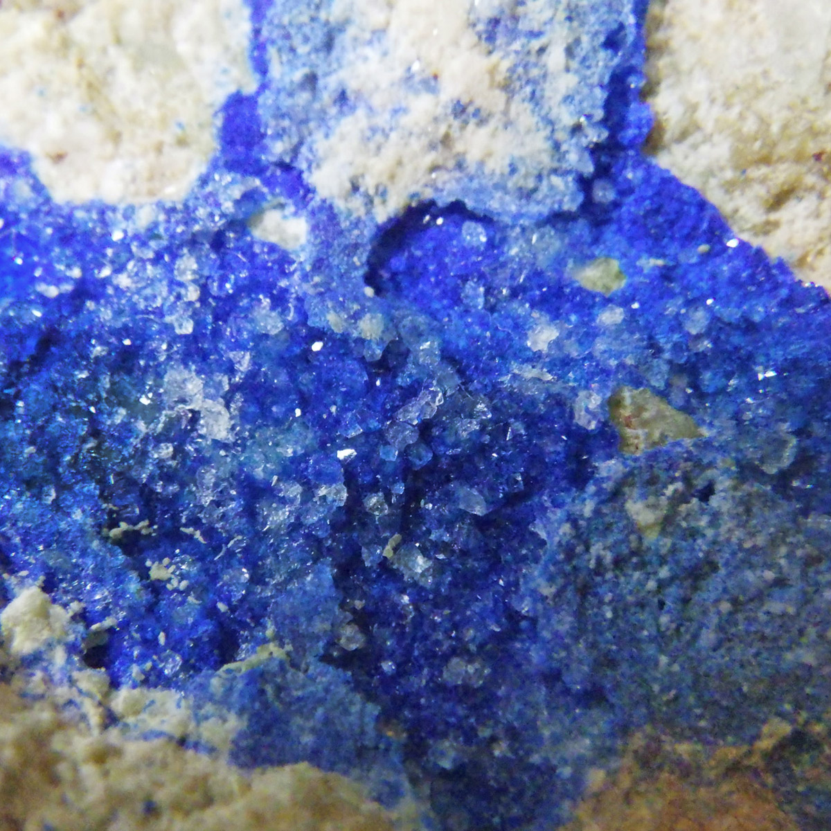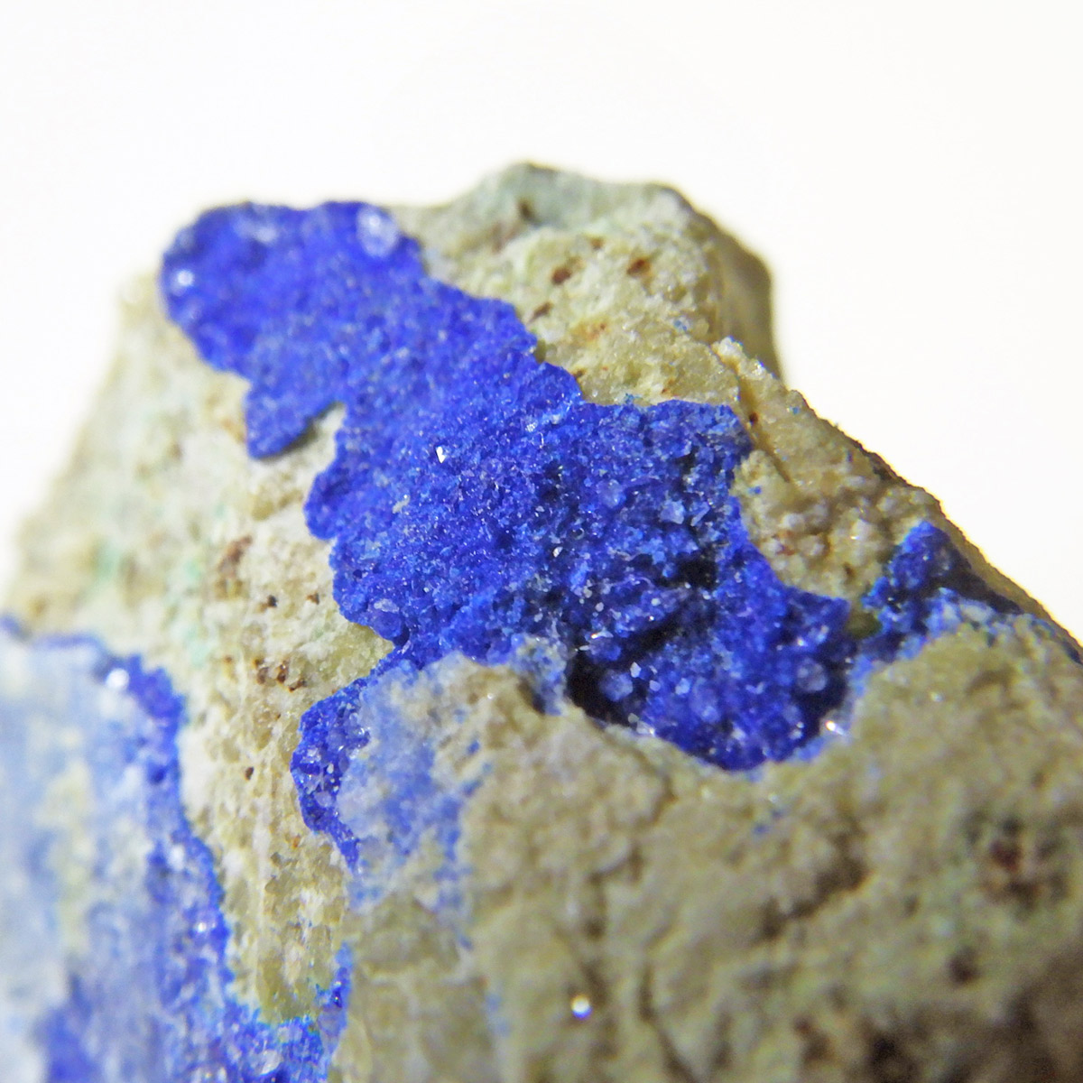 アメリカ・アリゾナ州クリスマス鉱山産のキノアイト母岩付き原石です。キノアイトは銅鉱山で産出される鉱物。美しいブルーの部分がキノアイトです。キラキラしているのはアポフィライトとのことです。キノアイトはカルシウムと銅の含水珪酸塩鉱物とされています。