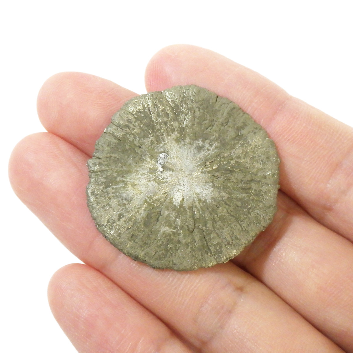 パイライトサンは、岩石の亀裂などに入り込んだ銅を重としたミネラルが、円形に広がり結晶化してできた魅力的な鉱物です。 今回ご用意したものは、世界でも良質なものを産出するアメリカのイリノイ州産。 中心から放射状に広がり、光が当たると、美しい金属光沢が見られる円盤形結晶です。 近年いくつかあった鉱山も産出量が減少し始め、パイライトサン自体が希少となっています。 パイライトサンには、一般的なパイライトでは見ることができない神秘的な輝きがあります。
