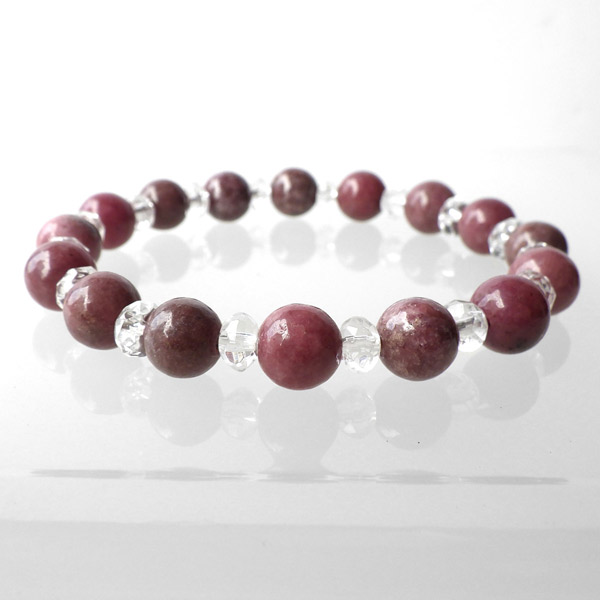 ロードナイトと水晶のブレスレット 8mm玉 内周16cm