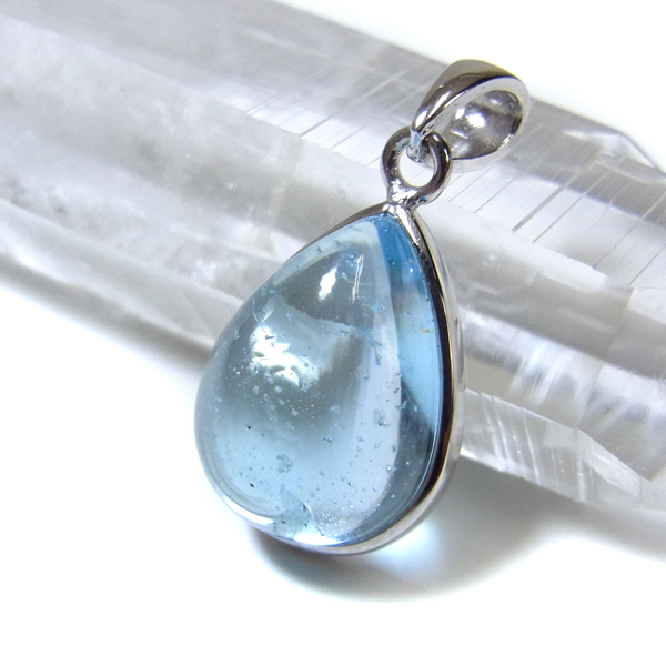ブルートパーズ カボション しずく形 ペンダントトップ ブラジル産