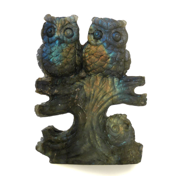ラブラドライト ふくろう 彫刻 置物 高さ110mm