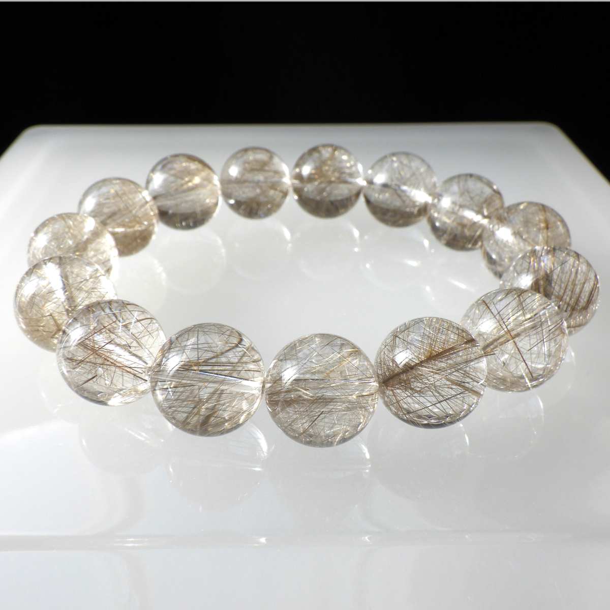 シルバールチルクォーツ ブレスレット 14.5mm玉×15個 内周17.5cm
