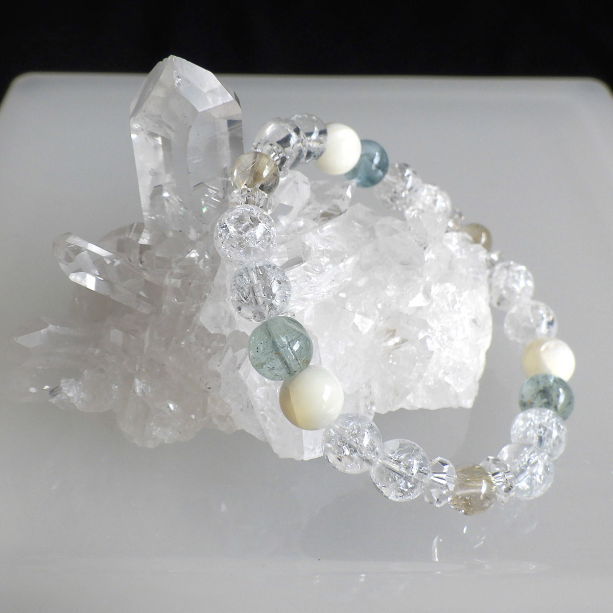 オリジナルブレスレット(アクアマリン・ルチルクォーツ・マザーオブパール・クラッククォーツ)