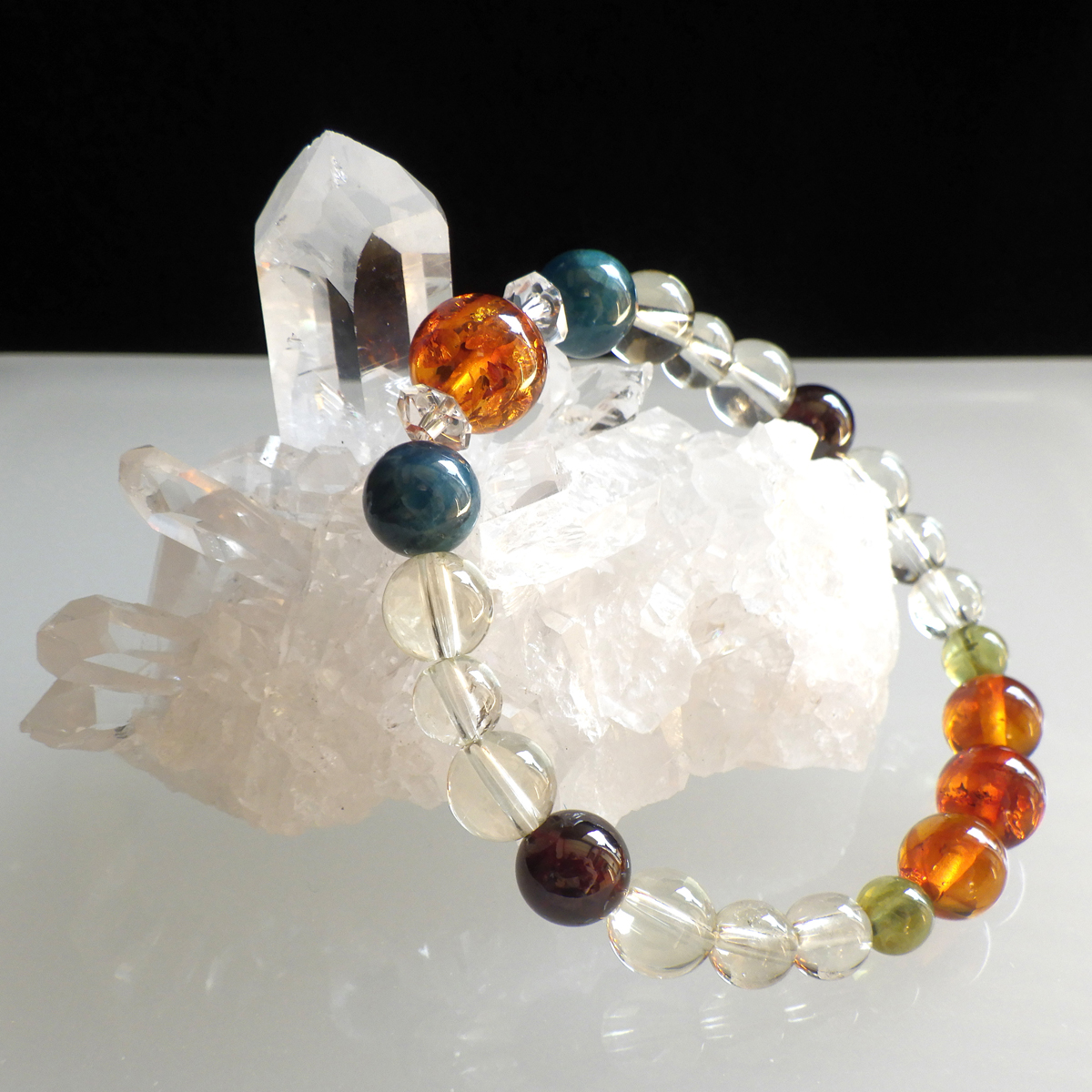 オリジナルブレスレット(アンバー・ブルーアパタイト・ガーネット・ペリドット)