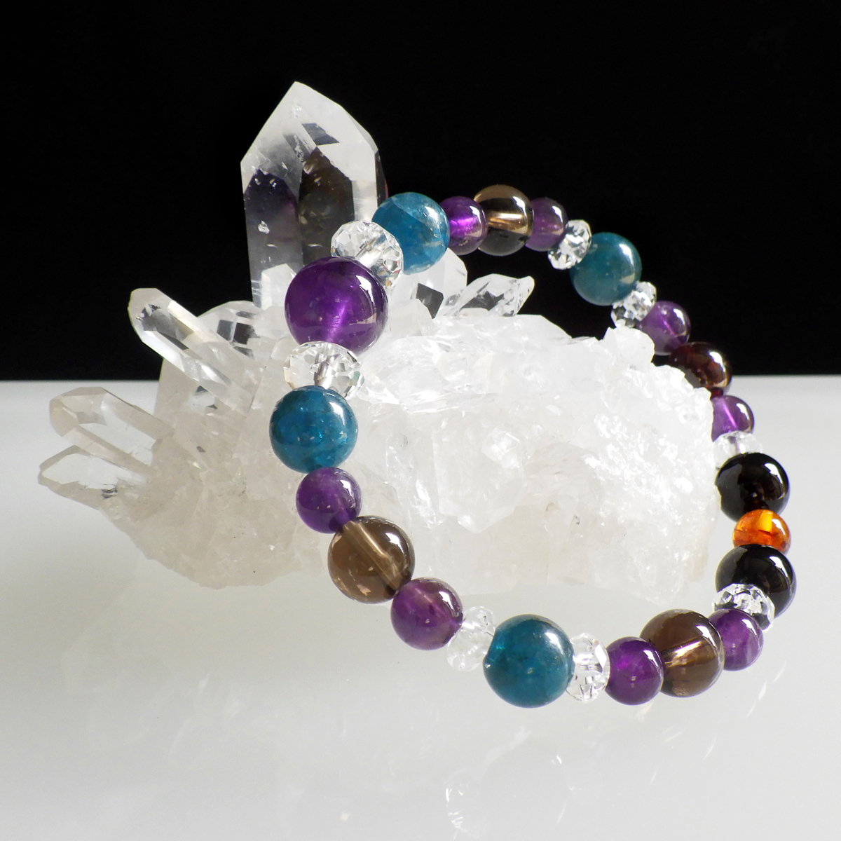 オリジナルブレスレット(アメジスト・アンバー・ブルーアパタイト・スモーキークォーツ・オニキス)