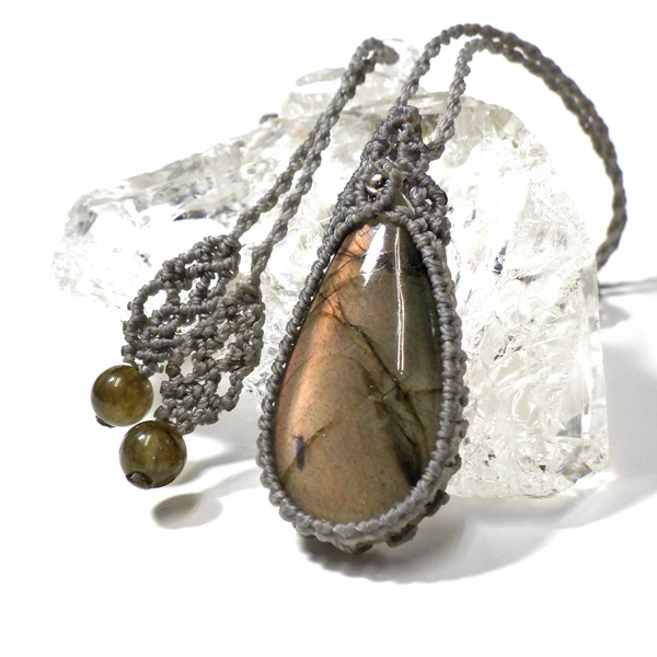 ピンクラブラドライト マクラメペンダント マダガスカル産
