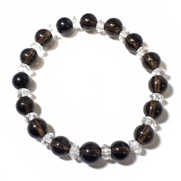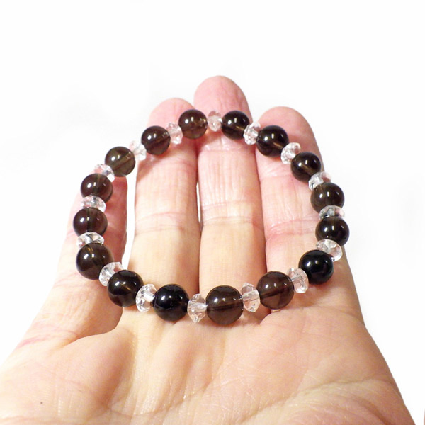 スモーキークォーツと水晶のブレスレット 8mm玉 内周16cm