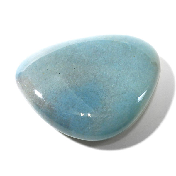 ブラジル産のトロレアイト、磨きペブルです。手のひらで包めるような大きさで平たく磨いております。トロレアイトは非常に珍しいリン酸塩鉱物で淡青緑色から青みがかった塊で見つかり、ラズライト、スコルザライトとの混合物のため、青く色付いています。発見者のスウェーデンのトロール氏にちなんで名付けられました。トロール=妖精という意味からアセンションストーン(碧い妖精の石)とも呼ばれています。日本ではトロール石とも呼ばれています。ブルーの濃淡や、色味がくすみカラーでかわいいです。