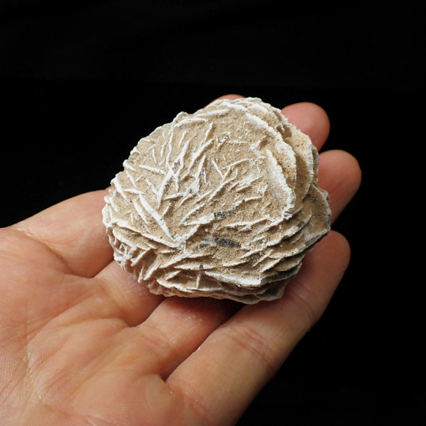 メキシコ産、デザートローズの原石です。手のひらに収まる大きさで形がかわいい結晶を厳選して集めました。デザートローズはジプサムを主成分とした砂漠で見つかる薔薇の花の形の結晶のことです。全体のフォルムとして見た目が丸っこく、細かいところまで織り成す結晶の美しさと神秘さが素敵です。