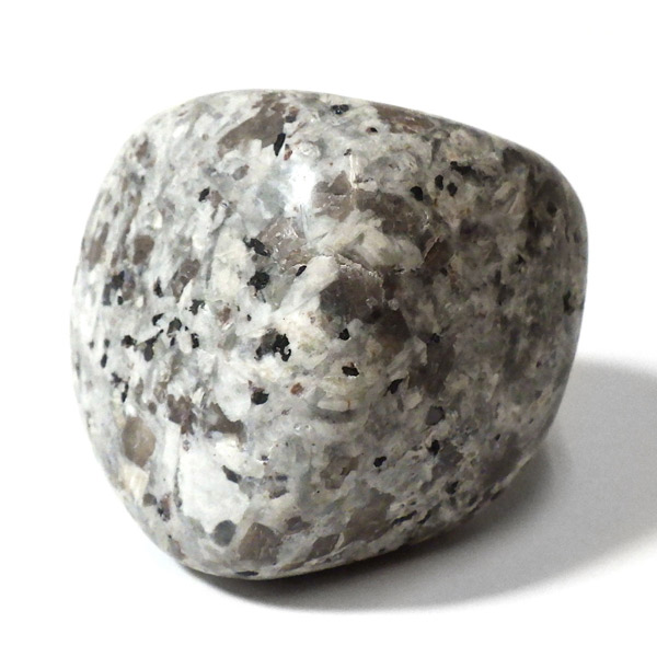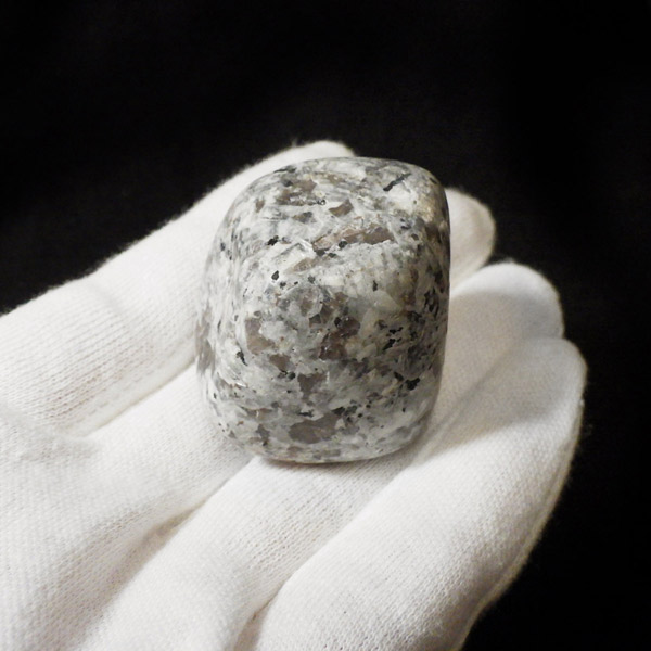 アメリカ・ミシガン州産のユーパーライトのタンブルです。 ユーパーライトは2017年に発見された比較的新しい天然石で、ブラックライトを当てると鮮やかなオレンジ色に輝く特別な性質を持ちます。鉱物としてはソーダライト含有閃長岩。 一見すると落ち着いたグレー調の石ですが、ライトを当てた瞬間に内側から炎のように光り出す姿は神秘的です。