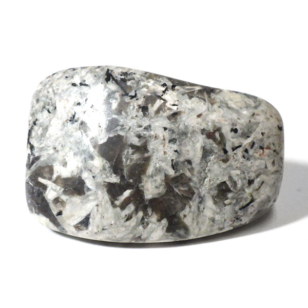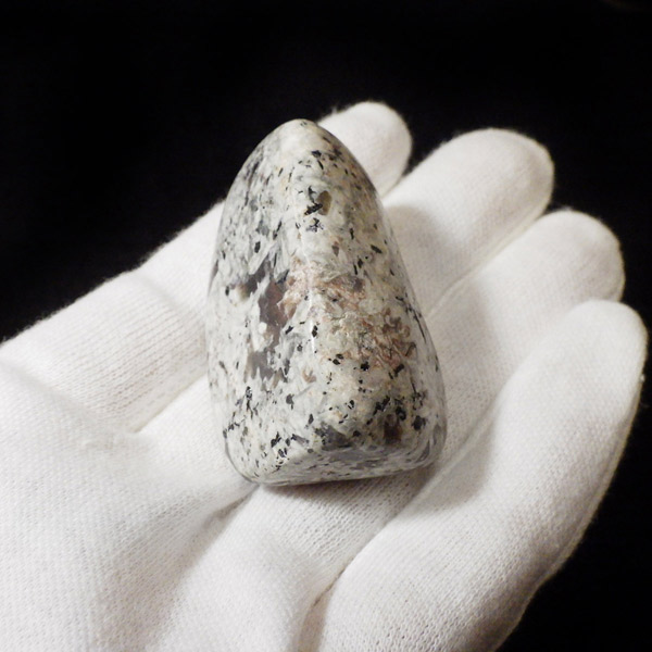 アメリカ・ミシガン州産のユーパーライトのタンブルです。 ユーパーライトは2017年に発見された比較的新しい天然石で、ブラックライトを当てると鮮やかなオレンジ色に輝く特別な性質を持ちます。鉱物としてはソーダライト含有閃長岩。 一見すると落ち着いたグレー調の石ですが、ライトを当てた瞬間に内側から炎のように光り出す姿は神秘的です。