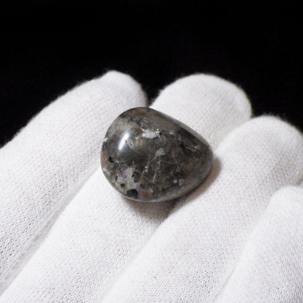 アメリカ・ミシガン州産のユーパーライトのタンブルです。 ユーパーライトは2017年に発見された比較的新しい天然石で、ブラックライトを当てると鮮やかなオレンジ色に輝く特別な性質を持ちます。鉱物としてはソーダライト含有閃長岩。 一見すると落ち着いたグレー調の石ですが、ライトを当てた瞬間に内側から炎のように光り出す姿は神秘的です。