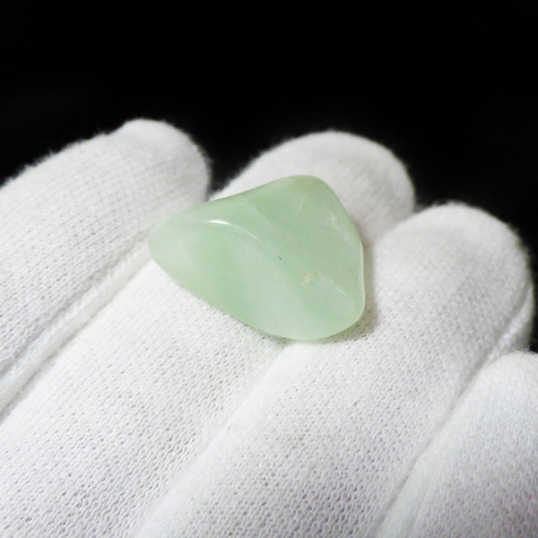 ナミビア産のアップルグリーンプレナイト、タンブルです。プレナイトは、淡い青緑から黄色にかけての色合いの石。1788年に南アフリカで初めてこの石を発見したフォン・プレーン大佐にちなんで名付けられました。葡萄石という和名は産出時に見た目が葡萄のようであったことから名づけられました。今回は黄色味がかったものではなく、発色の良いアップルグリーンのプレナイトをご用意いたしました。綺麗な色合いで心が落ち着きます。