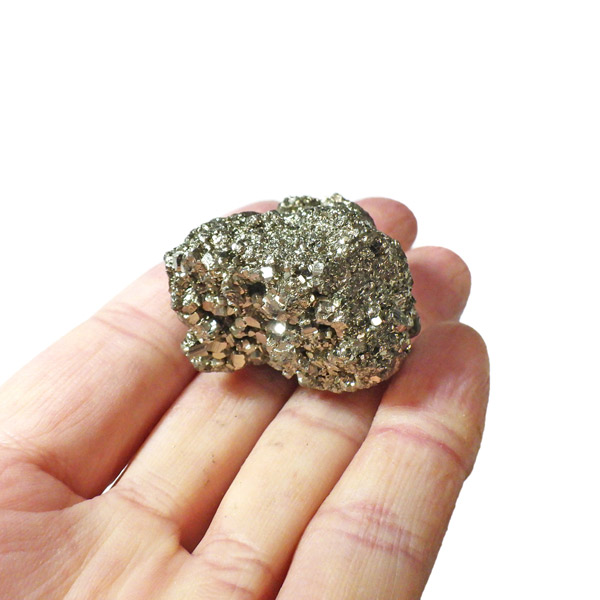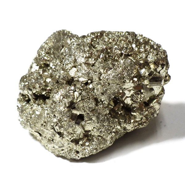 ペルー産のパイライト原石です。コロッとかわいらしいサイズでキラキラが信じられないほどまぶしい原石。パイライトは、火山活動の活発な場所で生成されます。結晶は大変整った六面体や八面体です。金と間違えるほどのゴールドで、硫黄と鉄で構成された鉱物の一種です。