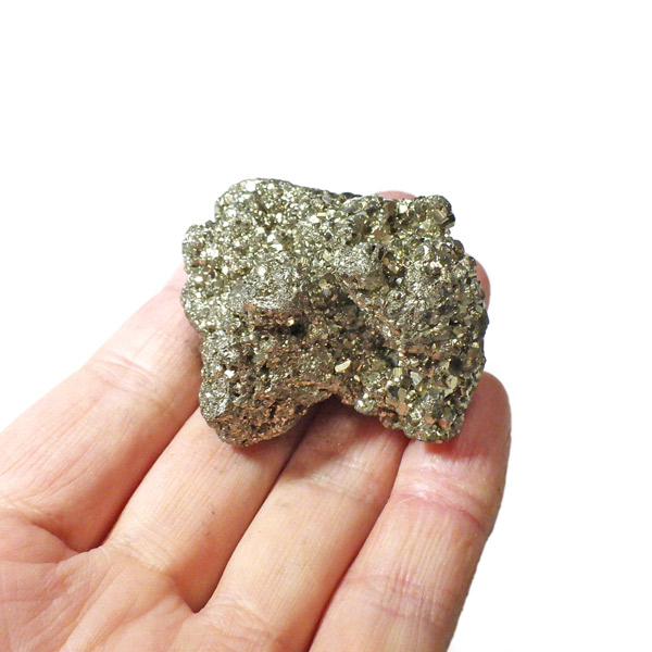 ペルー産のパイライト原石です。コロッとかわいらしいサイズでキラキラが信じられないほどまぶしい原石。パイライトは、火山活動の活発な場所で生成されます。結晶は大変整った六面体や八面体です。金と間違えるほどのゴールドで、硫黄と鉄で構成された鉱物の一種です。