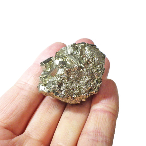 ペルー産のパイライト原石です。コロッとかわいらしいサイズでキラキラが信じられないほどまぶしい原石。パイライトは、火山活動の活発な場所で生成されます。結晶は大変整った六面体や八面体です。金と間違えるほどのゴールドで、硫黄と鉄で構成された鉱物の一種です。