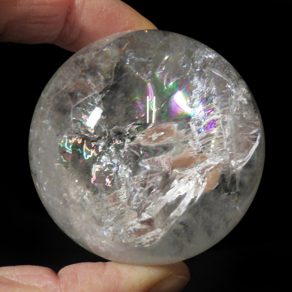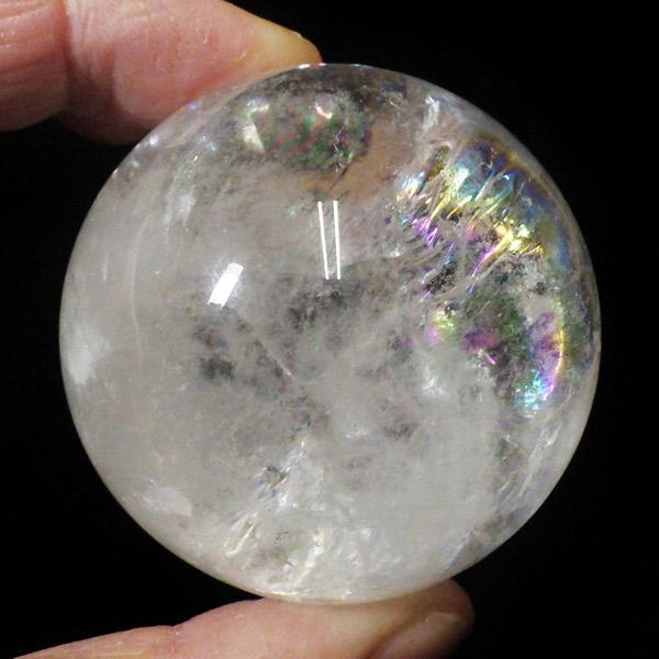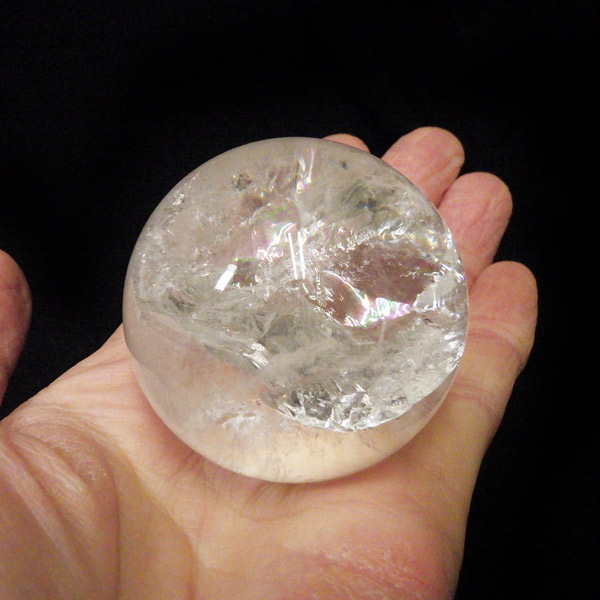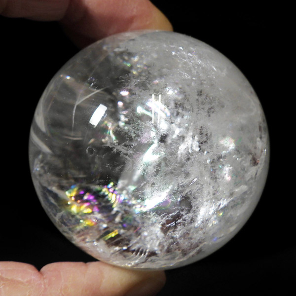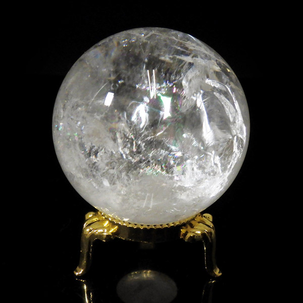 水晶球 直径54mm レインボー水晶 丸玉 スフィア ブラジル産 金属製台付き