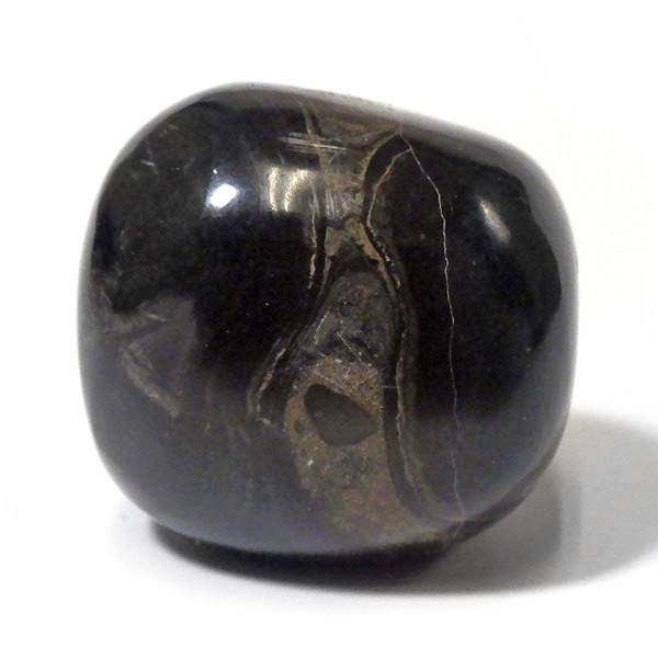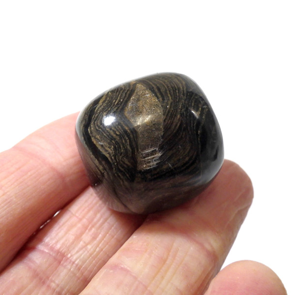 ペルー産、ストロマトライトのタンブルです。ストロマトライトは30億年前以上、シアノバクテリアなどの藍藻類の死骸と泥粒などによって作られる層状の構造をもつ岩石のことです。海水、淡水域どちらからも見つかり地球上に広く分布していたことが伺えます。長い年月をかけて堆積した岩石で縞模様の広さから当時の様子が伺えることなどから化石に分類されています。
