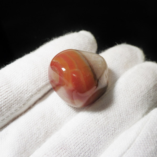 レッドアゲートは丸く研磨すると縞模様が眼のように浮かびあがるという意味合いから、「赤天眼石」と呼ばれることもあります。サードオニキスのこの特徴的な縞模様は、天眼石と同じく人や物事を見極める意味合いもあります。また、魔除けとして、悪意や嫉妬など、他人から悪意をもたれたときにも力を発揮してくれるといわれています。更に、人間関係全般に幸運をもたらし、恋人や夫婦などパートナーシップを安定させ、よい友情を引き寄せる効果があるといわれています。