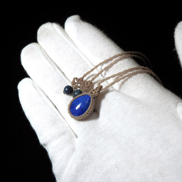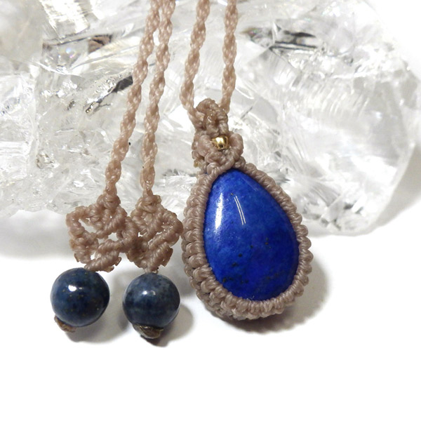 深い青が魅せる、アフガニスタン産ラピスラズリのマクラメペンダントです。