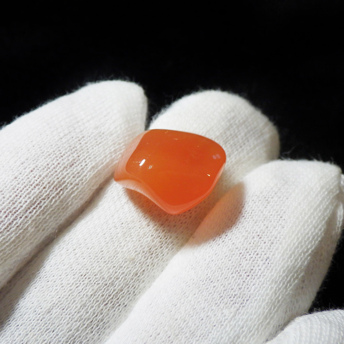 ボツワナ産カーネリアンのタンブルです。 発色が良く、濃いオレンジが美しいカーネリアンのタンブルを厳選しています。色ムラもほとんどなく、まるで綺麗なドロップのようです。