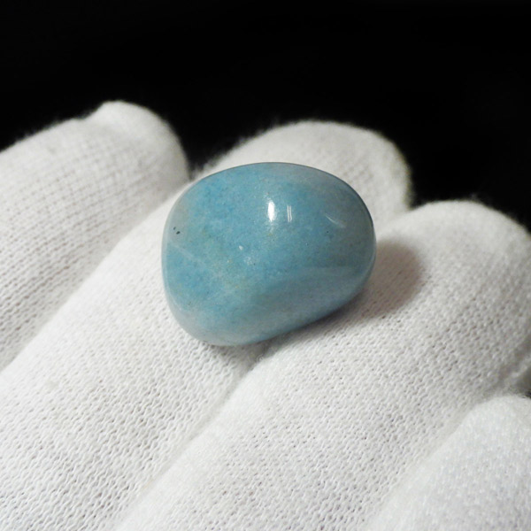 ブラジル産のトロレアイト、タンブルです。トロレアイトは非常に珍しいリン酸塩鉱物で淡青緑色から青みがかった塊で見つかり、ラズライト、スコルザライトとの混合物のため、青く色付いています。発見者のスウェーデンのトロール氏にちなんで名付けられました。トロール=妖精という意味からアセンションストーン(碧い妖精の石)とも呼ばれています。日本ではトロール石とも呼ばれています。ブルーの濃淡や、色味がくすみカラーでかわいいです。