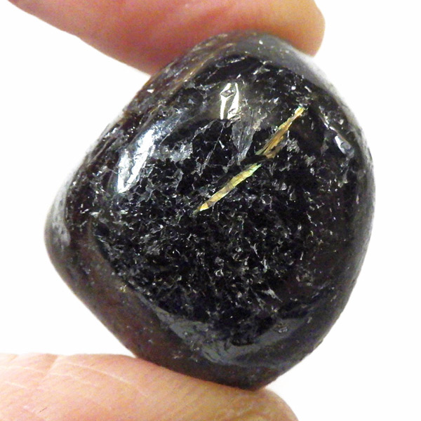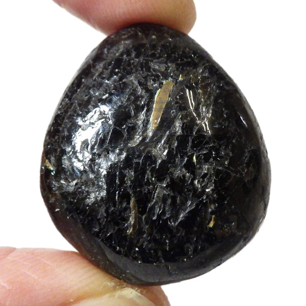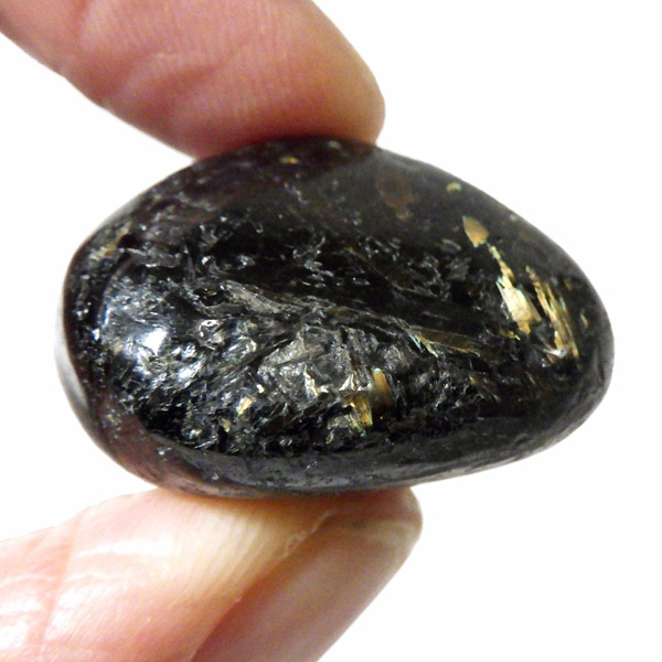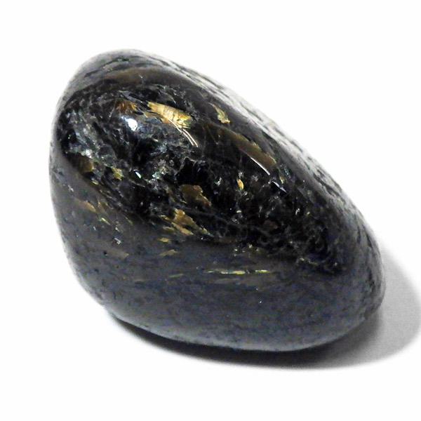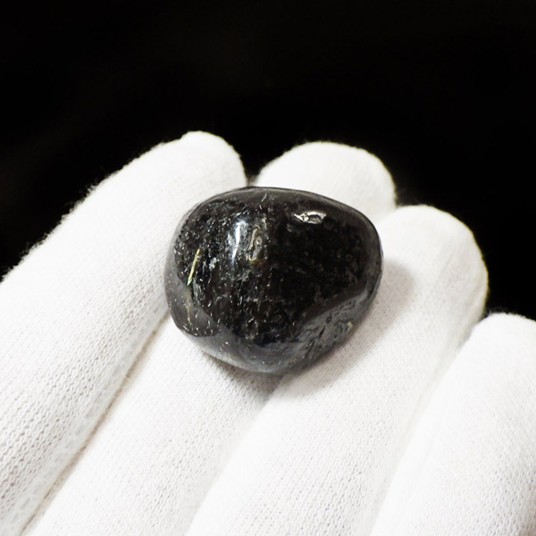 グリーンランド産の高品質ヌーマイト、タンブルです。 ヌーマイトは、1982年にグリーンランドのヌーク地方で発見され、地名に因んで名づけられました。ヌーマイト自体は30億年前から地球に存在したといわれる石で、気の遠くなるような年月を経て現代に現れた石だといわれています。和名は角閃石片麻岩。アンソフィライトやゲドライト、石英、など多様なミネラルを含んだ変成岩といわれています。一見、真っ黒い石に見えますが、光の角度によって鮮やかなゴールド、グリーン、ブルーなどのさまざまな色の閃光を示します。グリーンランド産のヌーマイトの虹色は、極微視的なアンソフィライトとゲドライトの交互の溶出ラメラ構造から反射された光の干渉によるものということです。世界で最も美しいと知られるのがグリーンランドのヌーマイトといわれています。