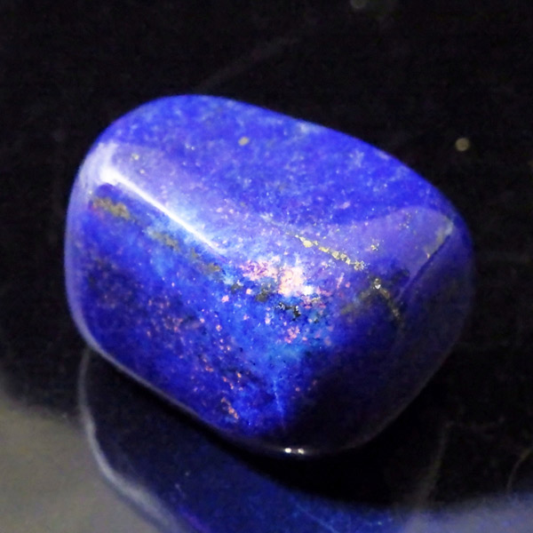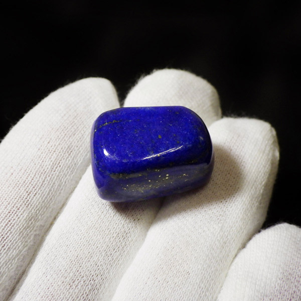 アフガニスタン産のラピスラズリ、タンブルです。 ラピスラズリは、ラズライト・アウィン・ソーダライト・ノーゼライトが集合したものです。特に、ラズライトとノーゼライトを多く含有すると、深く美しい色彩のラピスラズリとなります。全体的に、均一な色彩のものは少なく、黄金色の「パイライト」、白色の「カルサイト」など"が小さな斑点としてみられます。その中でも、トップクラスのグレードのものを集めました。