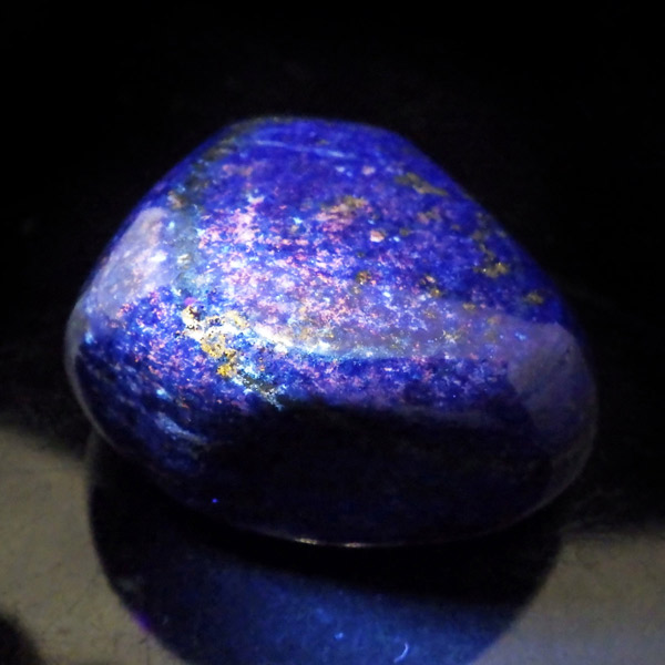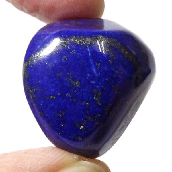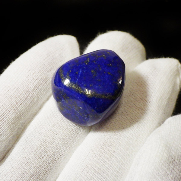 アフガニスタン産のラピスラズリ、タンブルです。 ラピスラズリは、ラズライト・アウィン・ソーダライト・ノーゼライトが集合したものです。特に、ラズライトとノーゼライトを多く含有すると、深く美しい色彩のラピスラズリとなります。全体的に、均一な色彩のものは少なく、黄金色の「パイライト」、白色の「カルサイト」など"が小さな斑点としてみられます。その中でも、トップクラスのグレードのものを集めました。